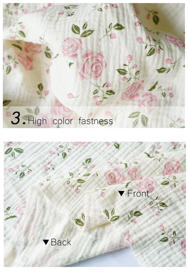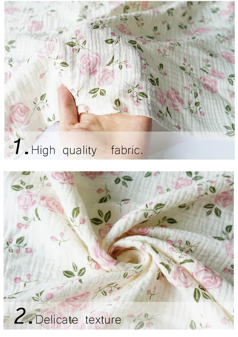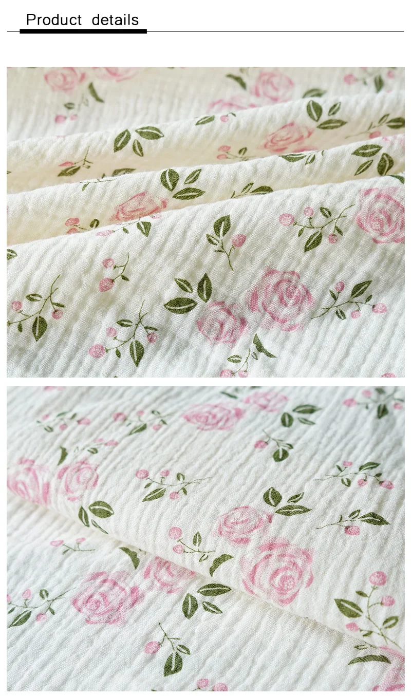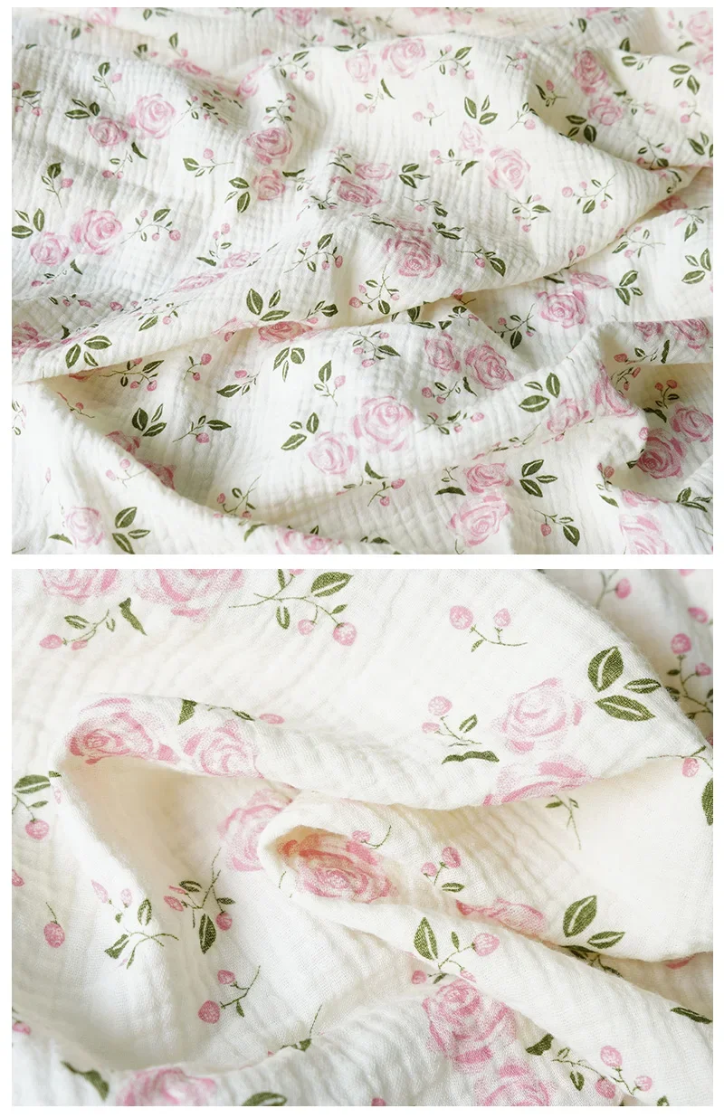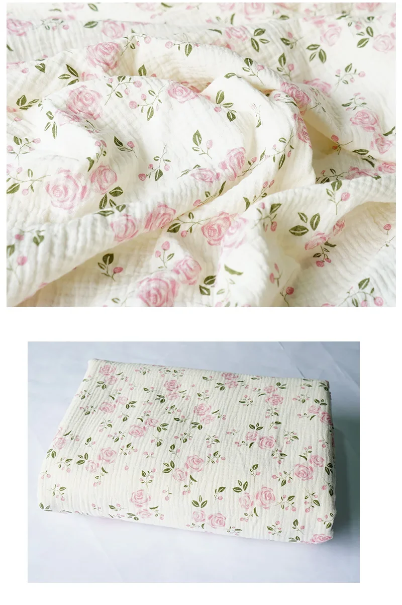 12 reviews for 135x50cm Pure Cotton Pink Rose Flower Printed Double-layer Crepe Fabric, Making Kids Blanket, Pajamas DIY Clothing Fabric