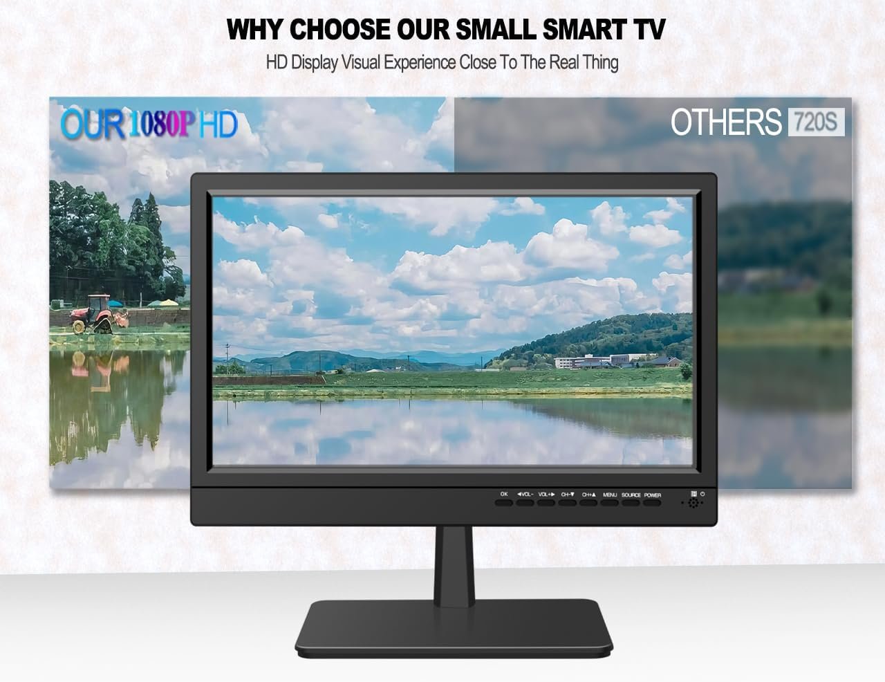 14 inch Small Smart TV, HD Flat Screen Android TV Download APPs for Kitchen, Bedroom, RV