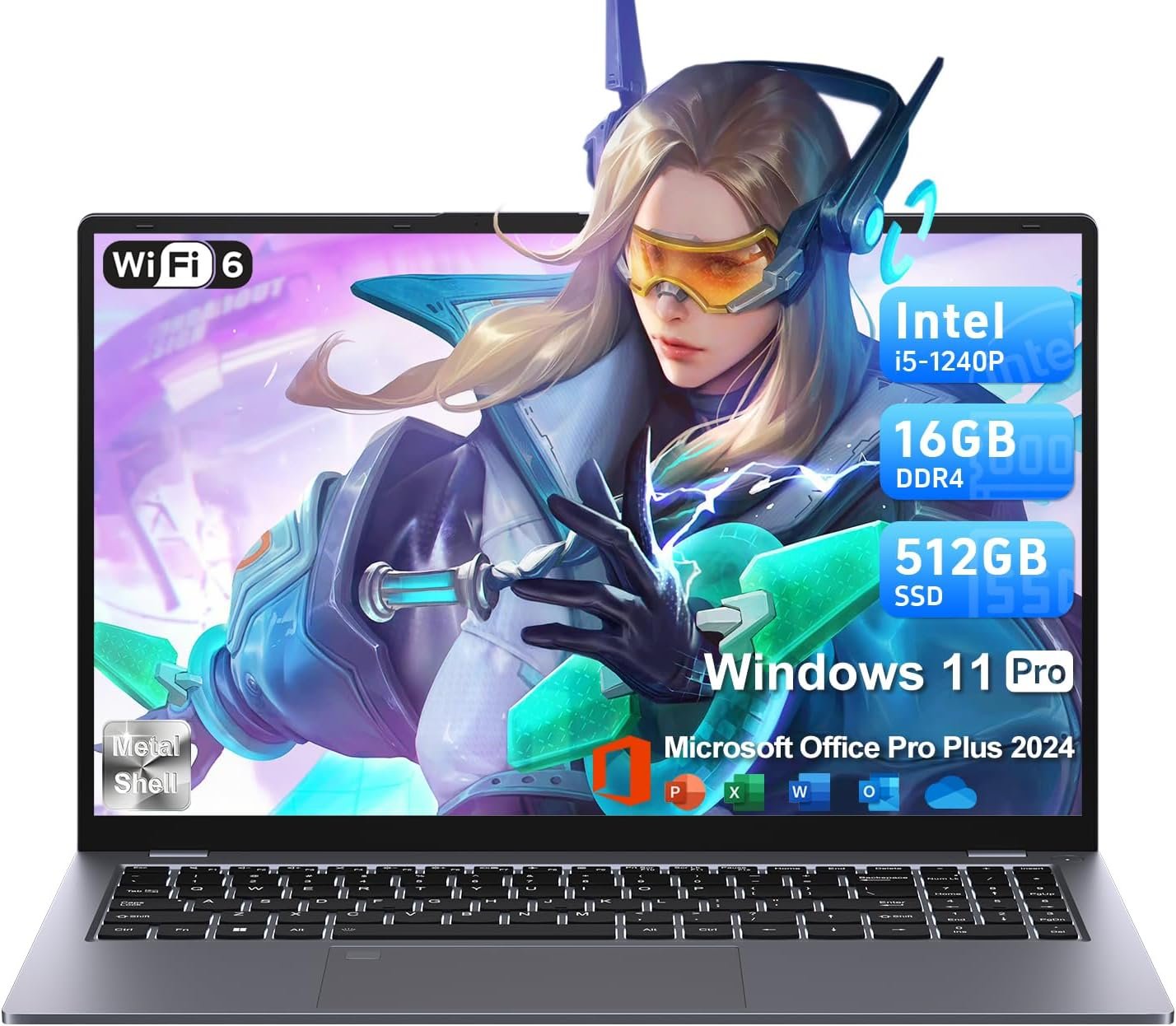 15.6″ Gaming-Laptop-Computer, 12th Inter 12-Core i5-1240P (Beat i5-12450H, Up to 4.4GHz) 16GB DDR4 512GB SSD, Windows 11 Laptop, FHD IPS Display,Fingerprint,Backlit,WiFi 6,BT5.2, 65W Type-C