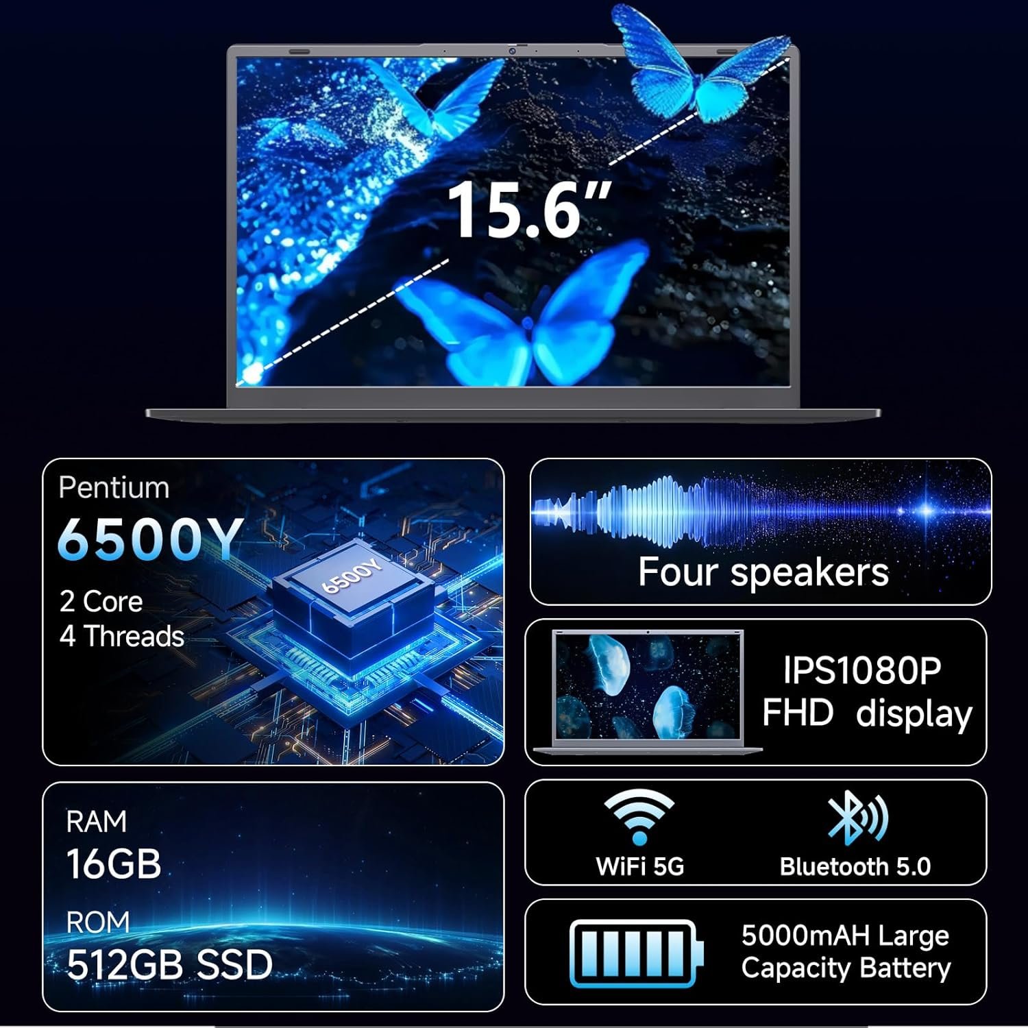 15.6 Inch Laptop 16GB RAM 512GB SSD, Gold Pentium Processor (Up to 3.4GHz), Expandable to 1TB, IPS FHD Display, 38WH, USB3.2, Type-C, HDMI, WiFi 5, Win11 Laptop, Notebook Laptops
