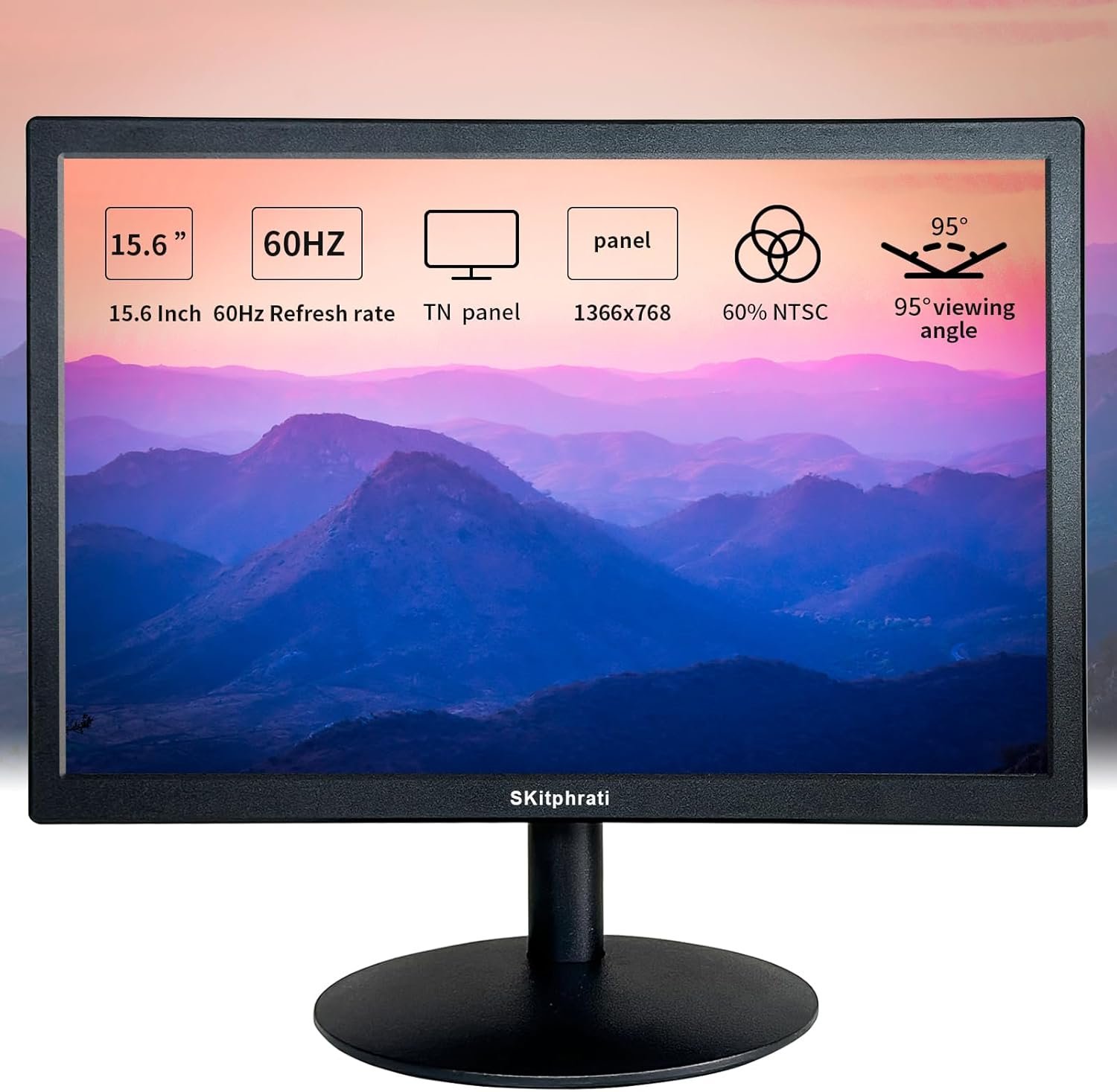 Immersive Viewing: 15.6-inch monitor with 1366×768 resolution and 60Hz refresh rate for a smooth visual experience. TN panel with 95° horizontal and vertical viewing angles for optimal visibility.