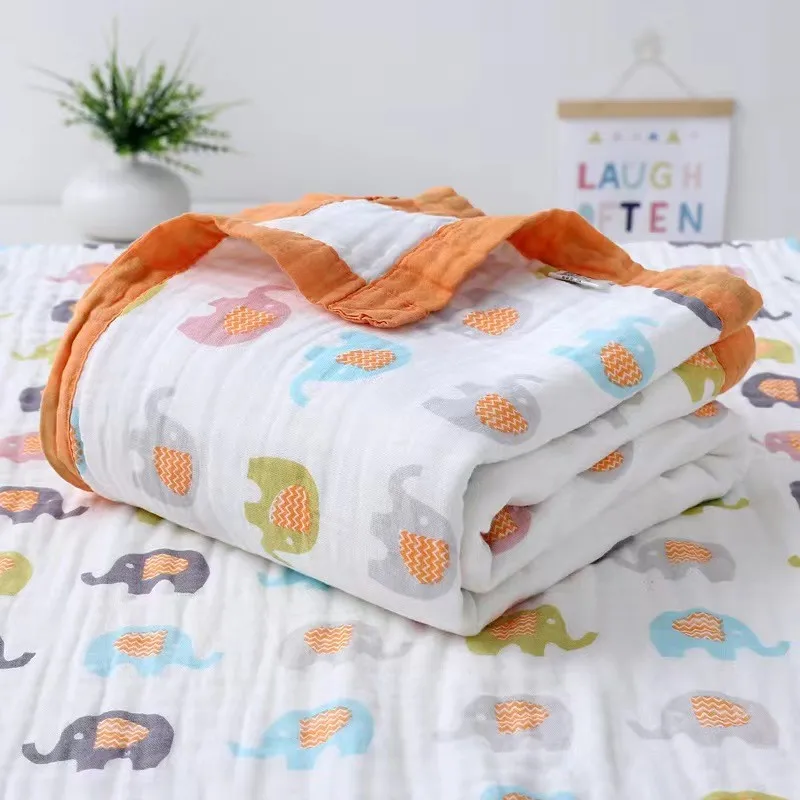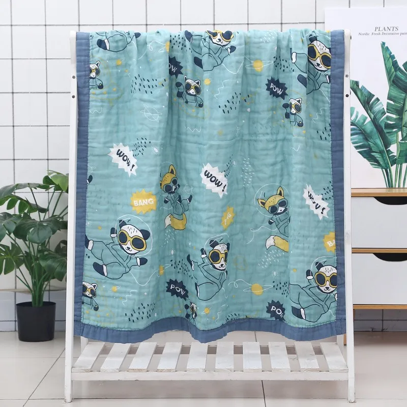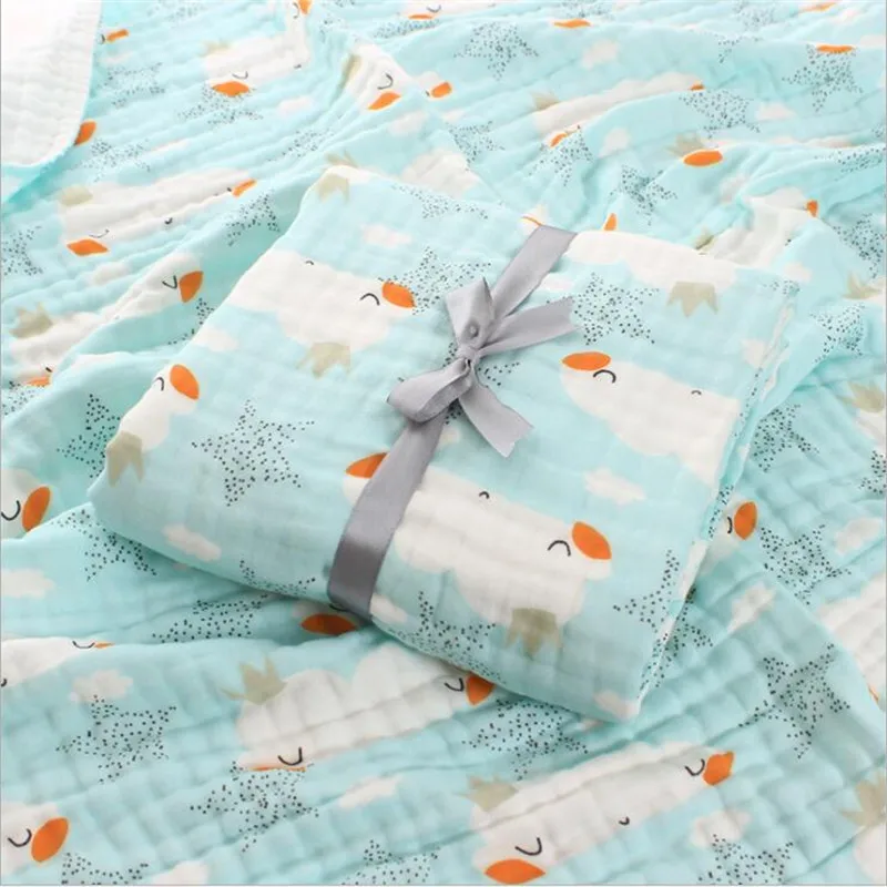 150*200cm Children Adults 6 Layer Cotton Gauze Muslin Travel Blanket Airplane Home Soft Summer Nap Throw Blanket for Sofa or Bed