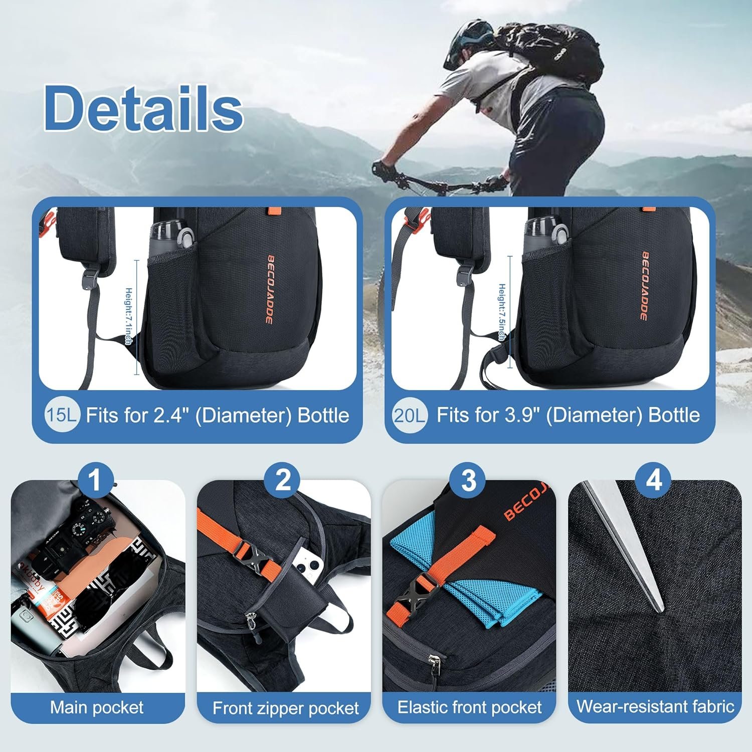 Organized Multi-Pocket Design: With a capacity of 15L, this lightweight backpack for travel features several compartments, including a front elastic mesh pocket, a front zippered pocket, 2 water bottle holder, and a rear anti-theft zippered pocket, keeping your essentials organized and accessible.
