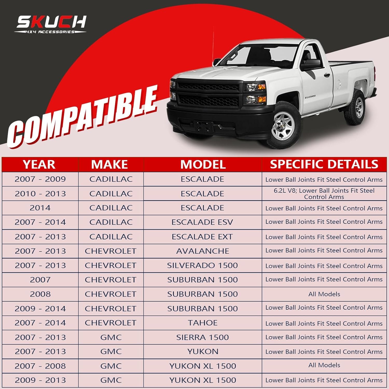Perfectly Adapted to the Model: Front Control Arms Kit Replacement for 1999-2000 Cadillac Escalade – [1995-1999 Chevrolet / GMC K1500] – 1995-1999 Chevrolet / GMC K1500 Suburban (5.7L) – [1995 1996 1997 1998 1999 Chevrolet / GMC K2500 (with 7,200 (lb) Gross Vehicle Weight (GVW))] – 1995-1996 Chevrolet / GMC K2500 Suburban (with 7,200 (lb) Gross Vehicle Weight (GVW)) – [1995-1999 Chevrolet Tahoe] – 2000 Chevrolet Tahoe (5.7L; Z71 Models Only) – [1995-1999 GMC Yukon] – 2000 GMC Yukon (5.7L)
