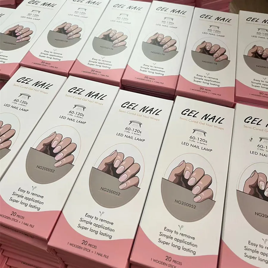 16/20Tips Semi-Cured Nail Wraps Simple Color Adhesive Full Cover Stickers for Nails UV Lamp Need Press On Nails DIY Manicure