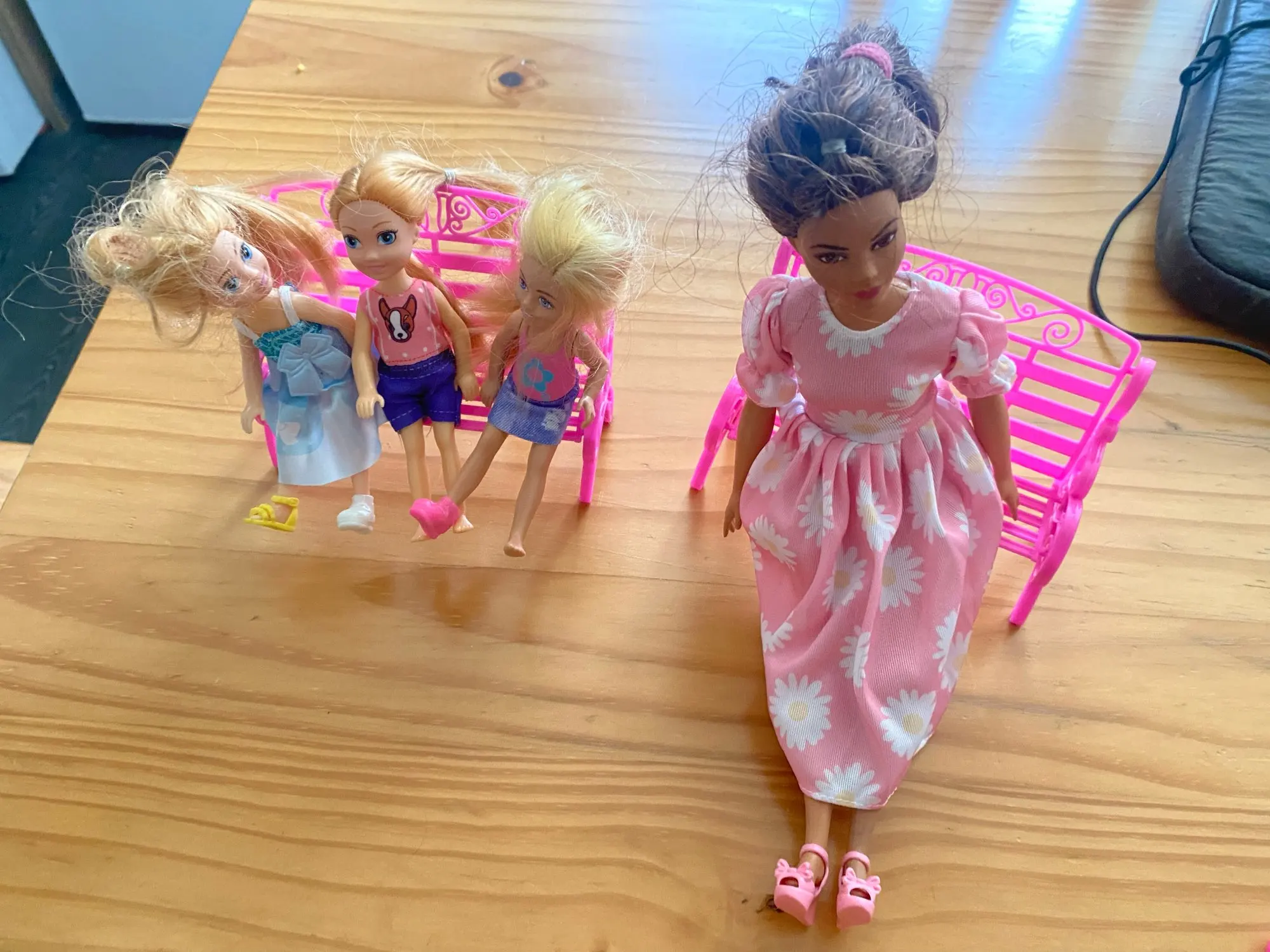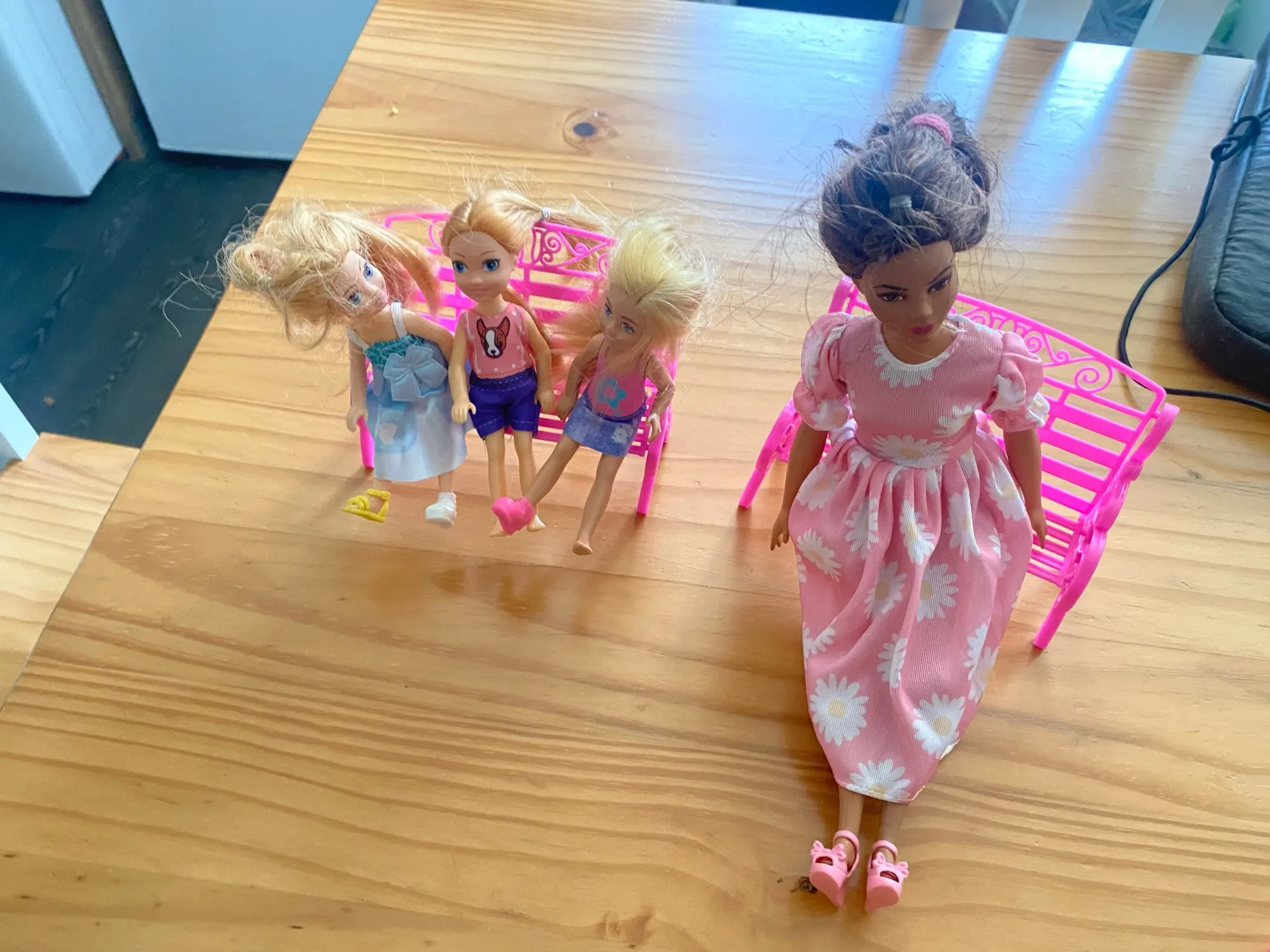 The chair looks cute and works well for smaller dolls. It does not really fit standard barbie size dolls, but it fits bendable dolls and chelsea-sized ones just fine. Good for display or small doll setups. Please check the pictures to get a better idea of the size.