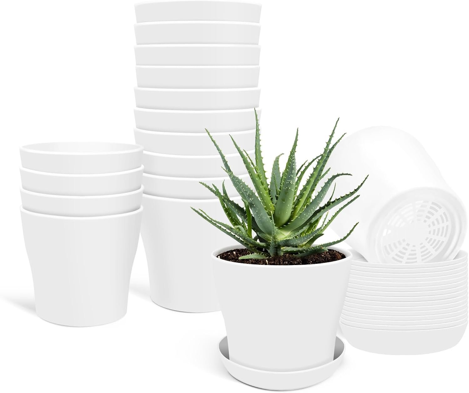 VERSATILE USAGE: Package includes 16 white pots for plants with a 3.8-inch caliber and the same numbers of tray. The small plant pots are perfect for growing small plants and starter plants, such as succulents, cactus, African violets, herbs, orchids, aloe, mint, ideal for indoor and outdoor gardening