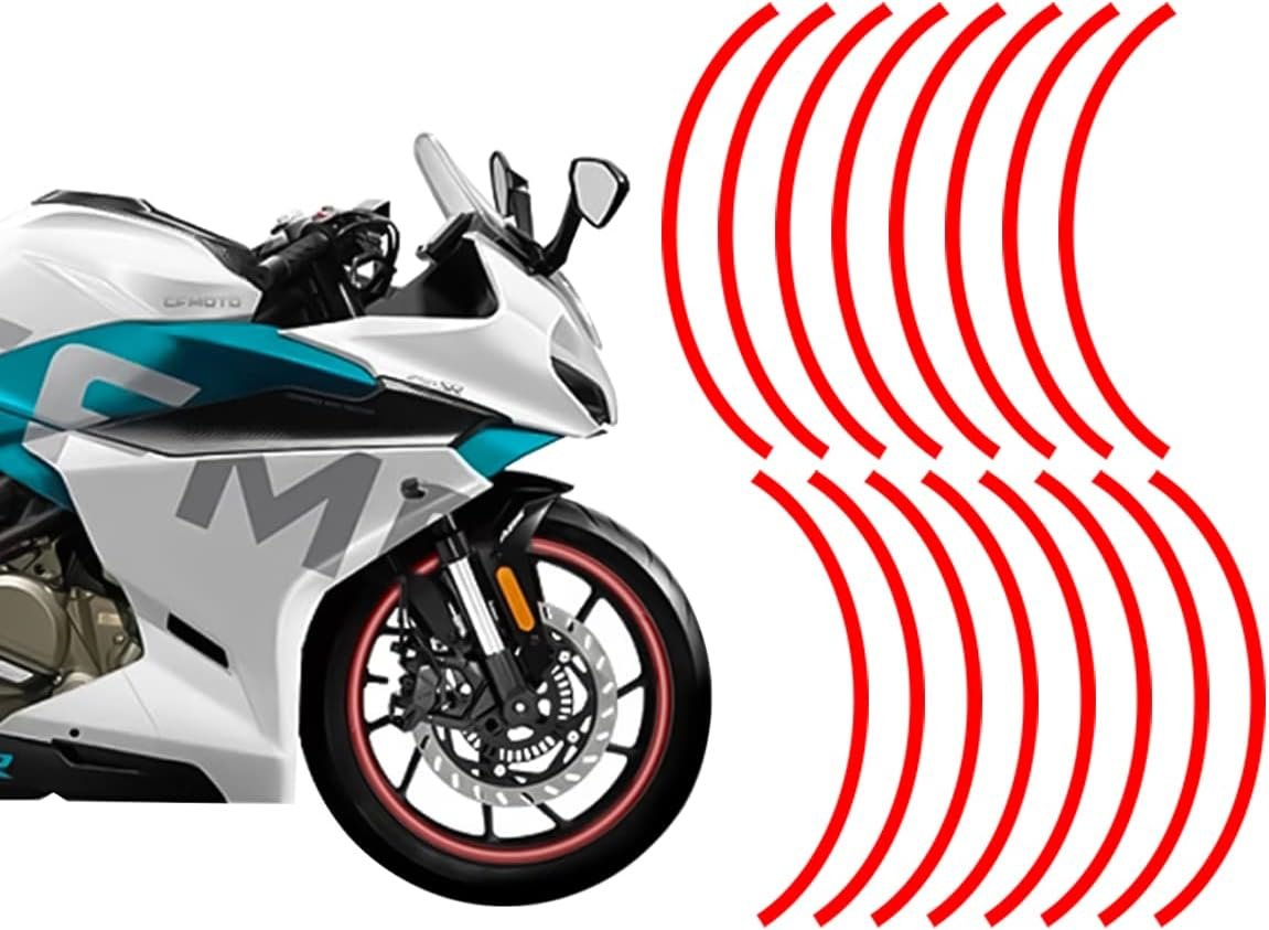 16PCS 17”-19” Reflective Wheel Rim Stripe Decal, Car Wheel Rim Tapes Decoration Stickers, Waterproof Night Safety Decals Automotive Accessories Universal for Motorcycle, Car, Bicycle (Red)