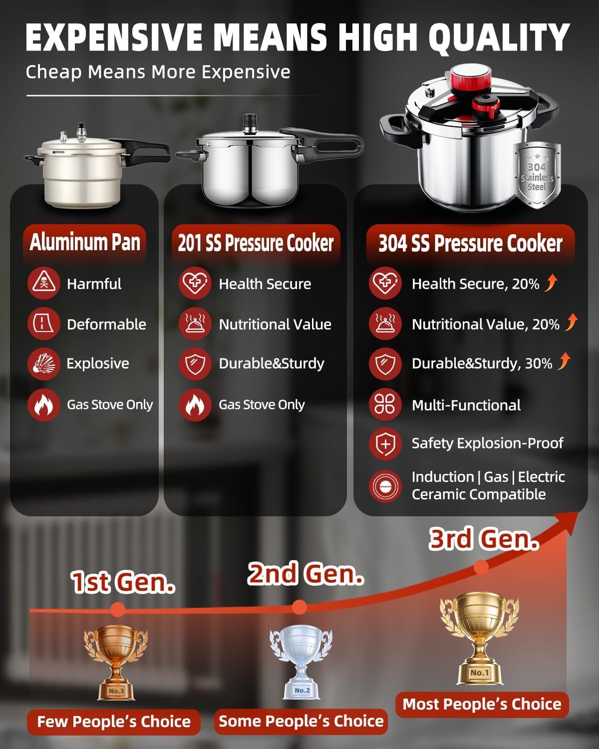 [COOKS UP TO 70% FASTER, BUILT TO LAST WITH 304 STAINLESS STEEL]: Made from premium, explosion-proof 18/8 stainless steel for superior cooking efficiency and durability.