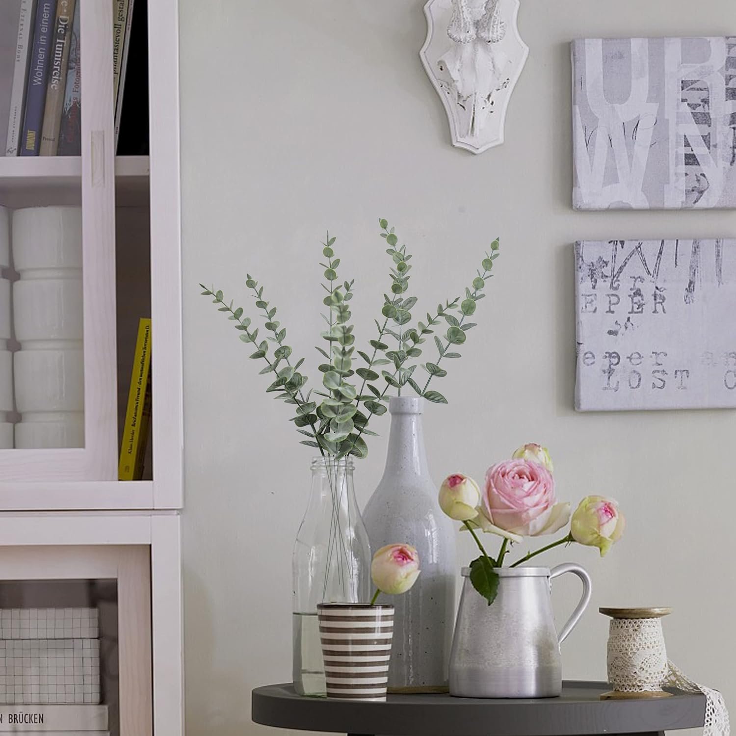[Versatile Use] These artificial eucalyptus stems can be shaped optionally due to the iron wire embedded. Combine the artificial eucalyptus stems with different kinds of flowers to make bouquets or use several eucalyptus stems with a mini vase to table decor at will. You can also use them to make wall hanging decor, door wreaths and so much more.