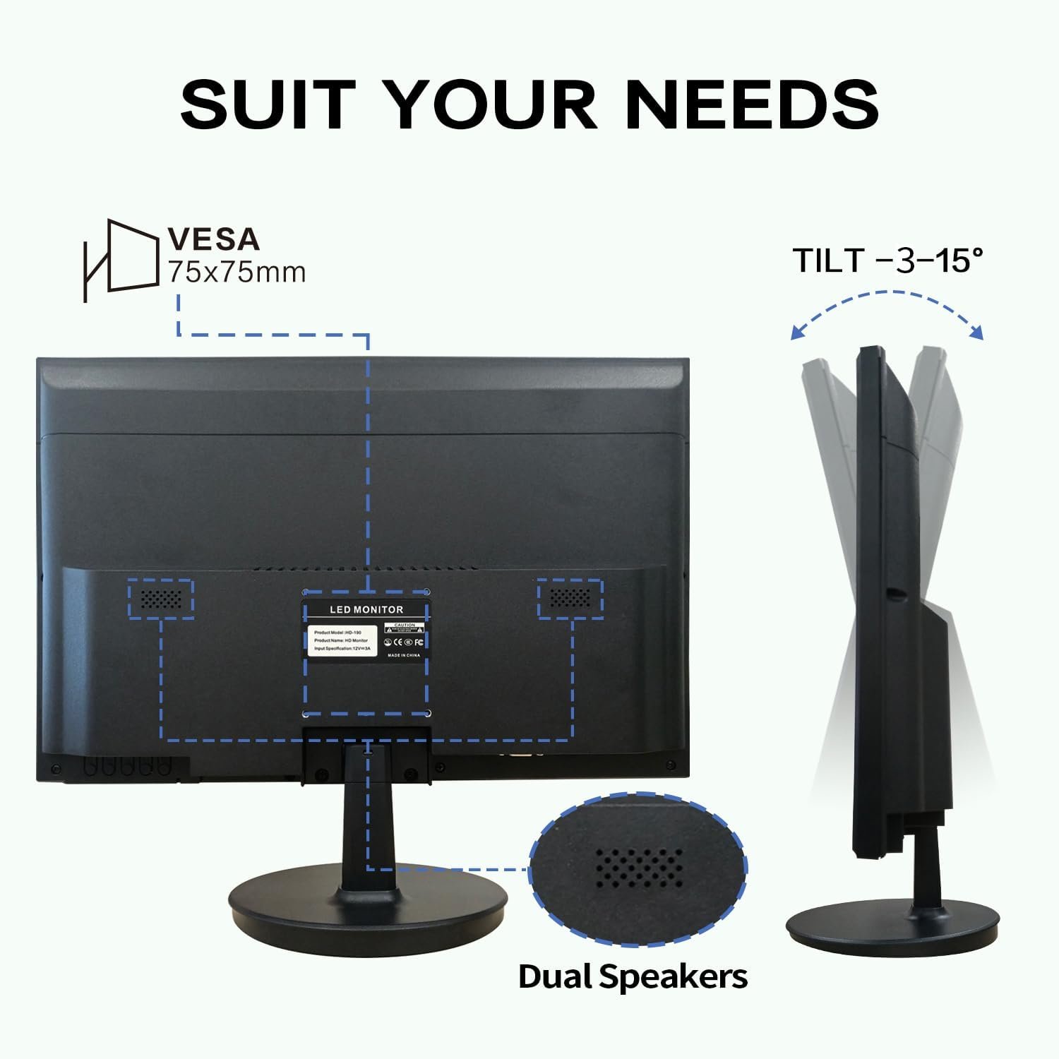 Dual Built-in Speakers: With dual built-in speakers, the 19 inch computer monitor delivers vivid and smooth surround sound, you can enjoy immersive viewing experience.Note that the speakers only work when connected via hdmi.