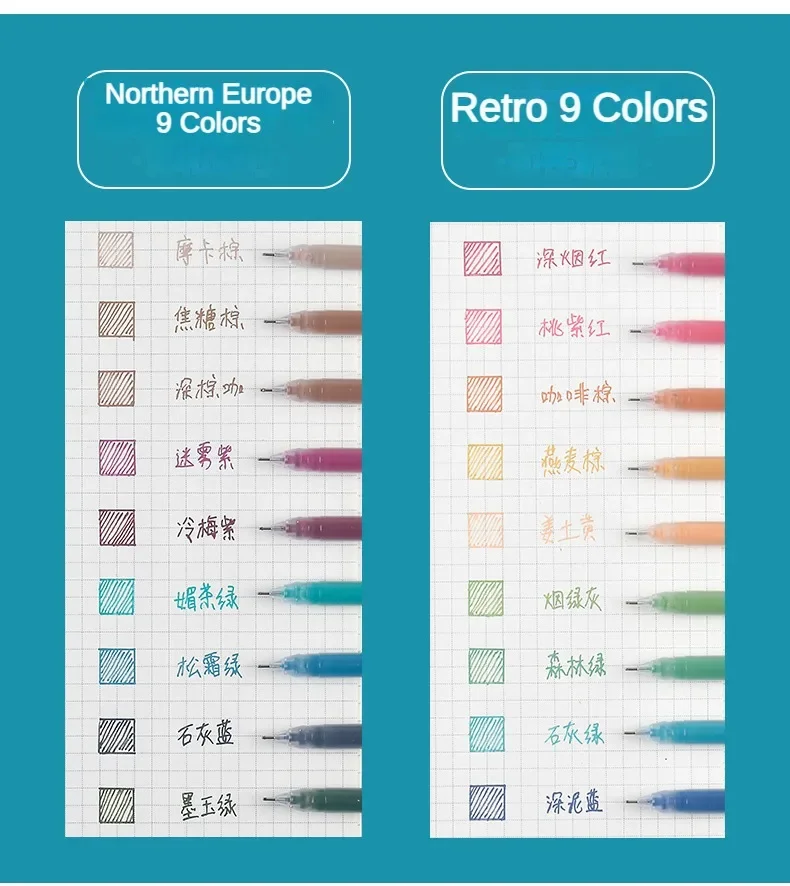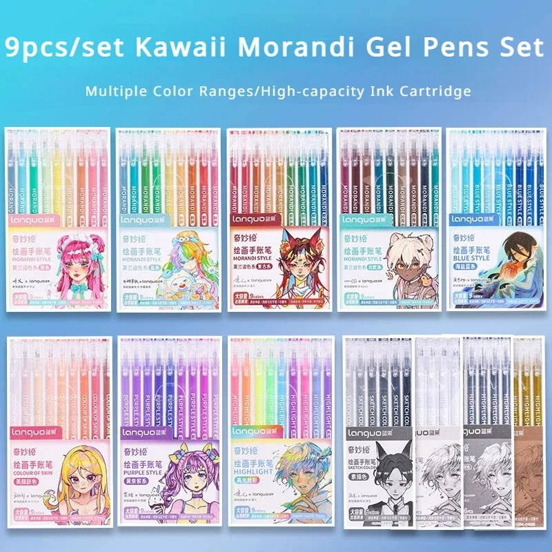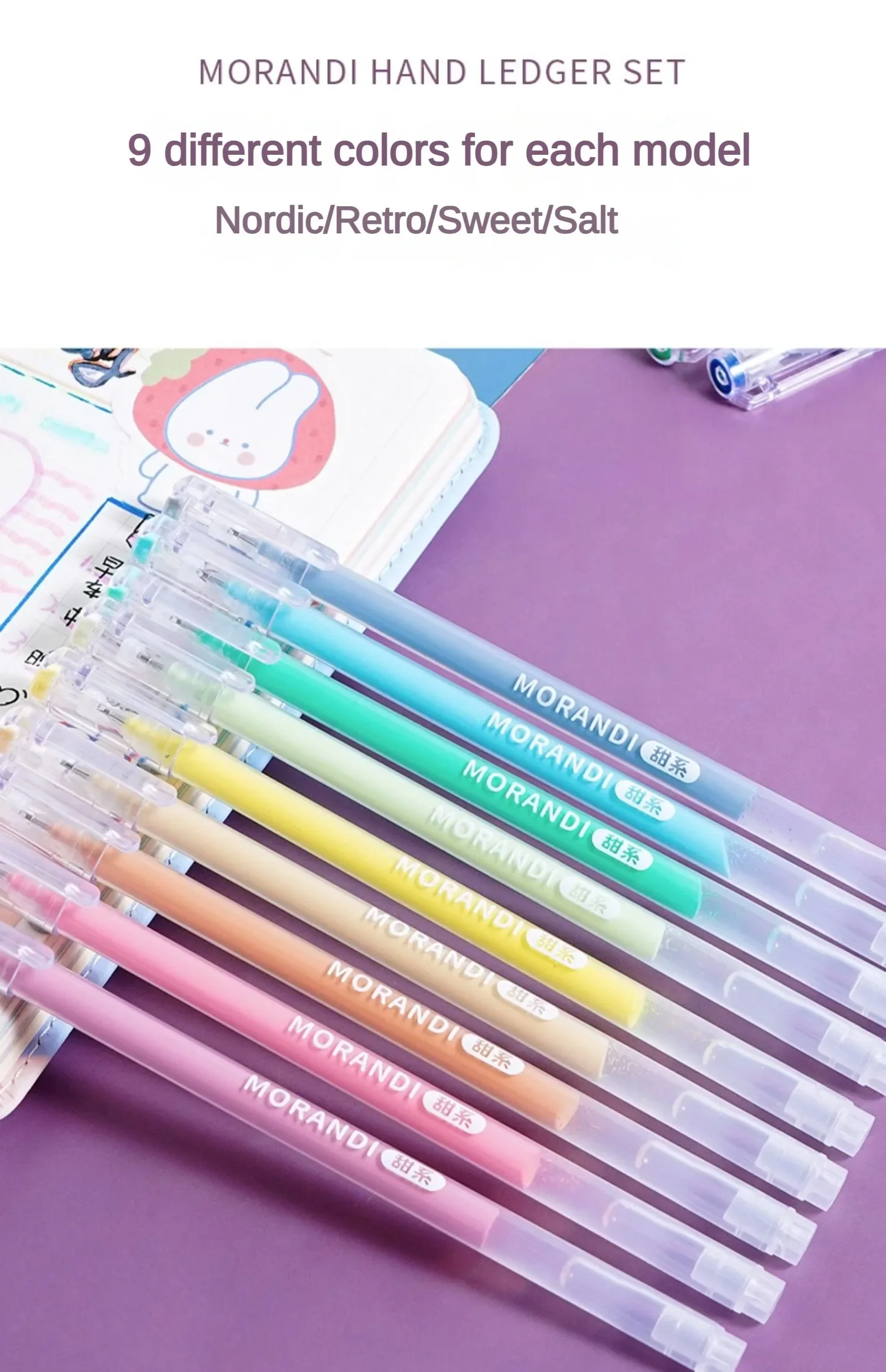 9pcs/set Kawaii Morandi Gel Pens Set Art Markers Multi Color Gel Ink Pens Liner Ballpoint Pen School Office Stationery Gift Pen