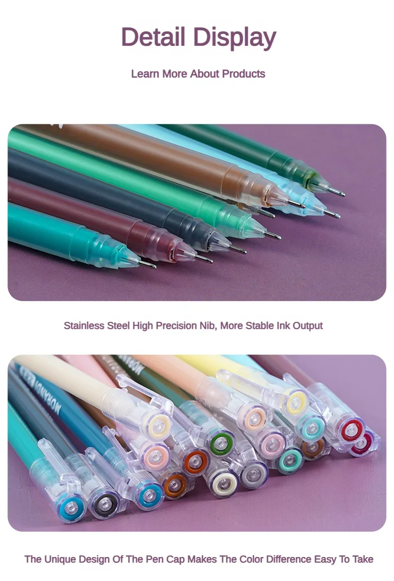 4.ã€Unique Pen Cap Design】: The uniquely designed pen caps not only look stylish but also help you easily identify the color of each pen, saving you time and effort.