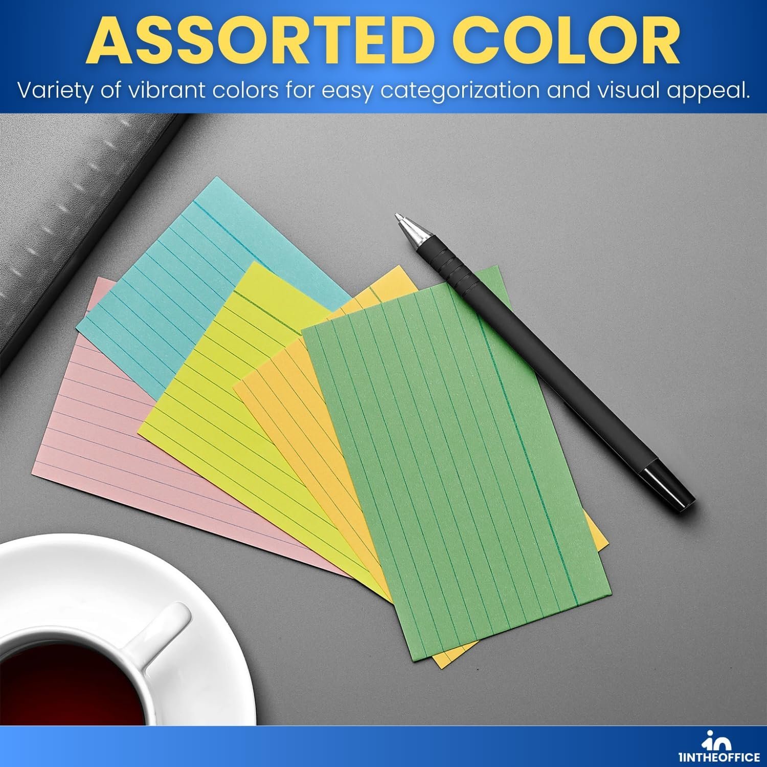 Colored index cards come in assorted pastel shades, making color-coded organization simple.