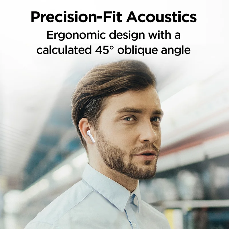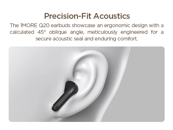 The 1MORE Q20 earbuds showcase an ergonomic design with a calculated 45oblique angle,meticulously meticulously engineered for a secure acoustic seal and enduring comfort