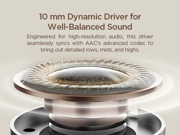 Engineered for high-resolution audio,this driver seamlessly syncs with AAC’s advanced codec to bring out detailed lows,mids,and highs.