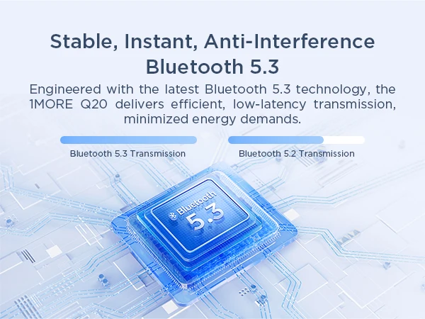 Engineered with the latest Bluetooth 5.3 technology,the 1MORE Q20 delivers effcient,low-latency transmission,minimized energy demands