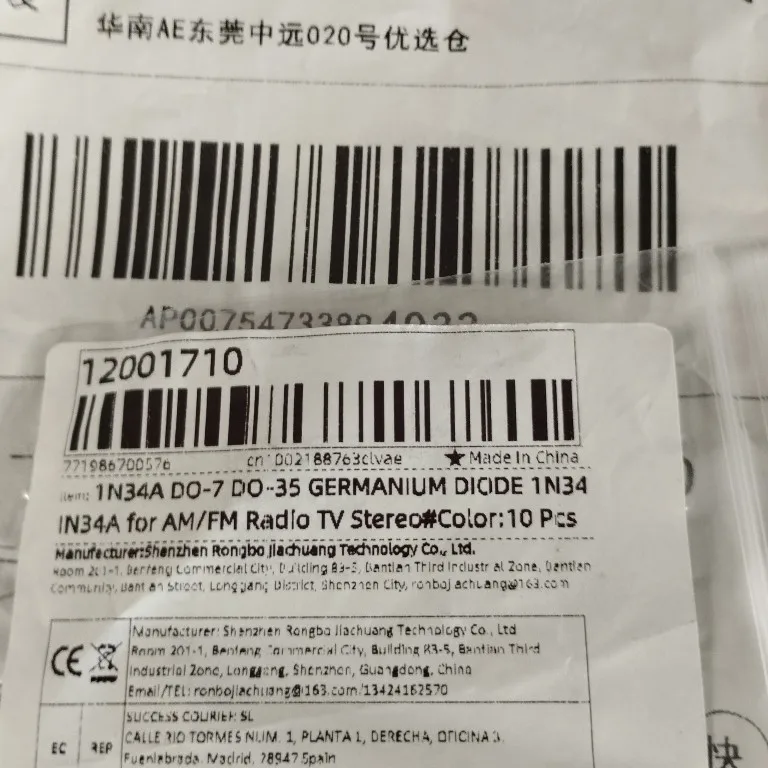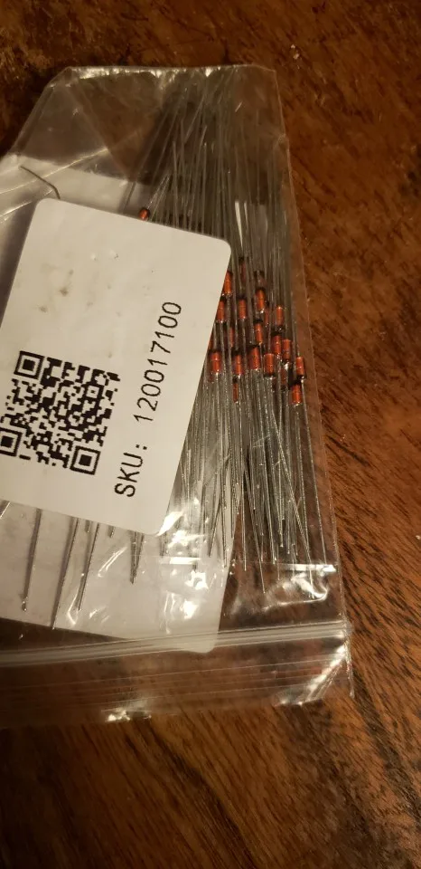Plus de diodes à étudier plus tard. Je n’ai pas encore ouvert le colis mais d’après ce que je peux voir, ils ont l’air bien. 👀 1N34A DO-7 DO-35 GERMANÈME. Comme d’habitude, si je trouve des anomalies une fois que je les utiliserai, je reviendrai ici. Jusqu’à présent, je donnerai cinq étoiles 🌟