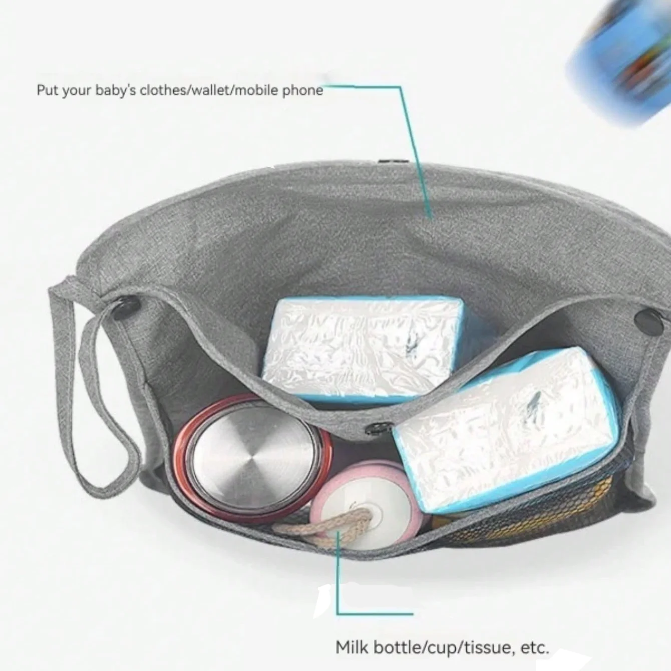 1pc Baby Stroller Hanging Bag Storage Double Layer Thickened Children’s Stroller Bag Hanging Mesh Umbrella Storage Sack