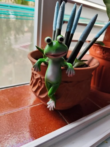 The package arrived quickly. Well-packaged. The frog is cute. Good quality. I like it. I recommend the product and the seller.