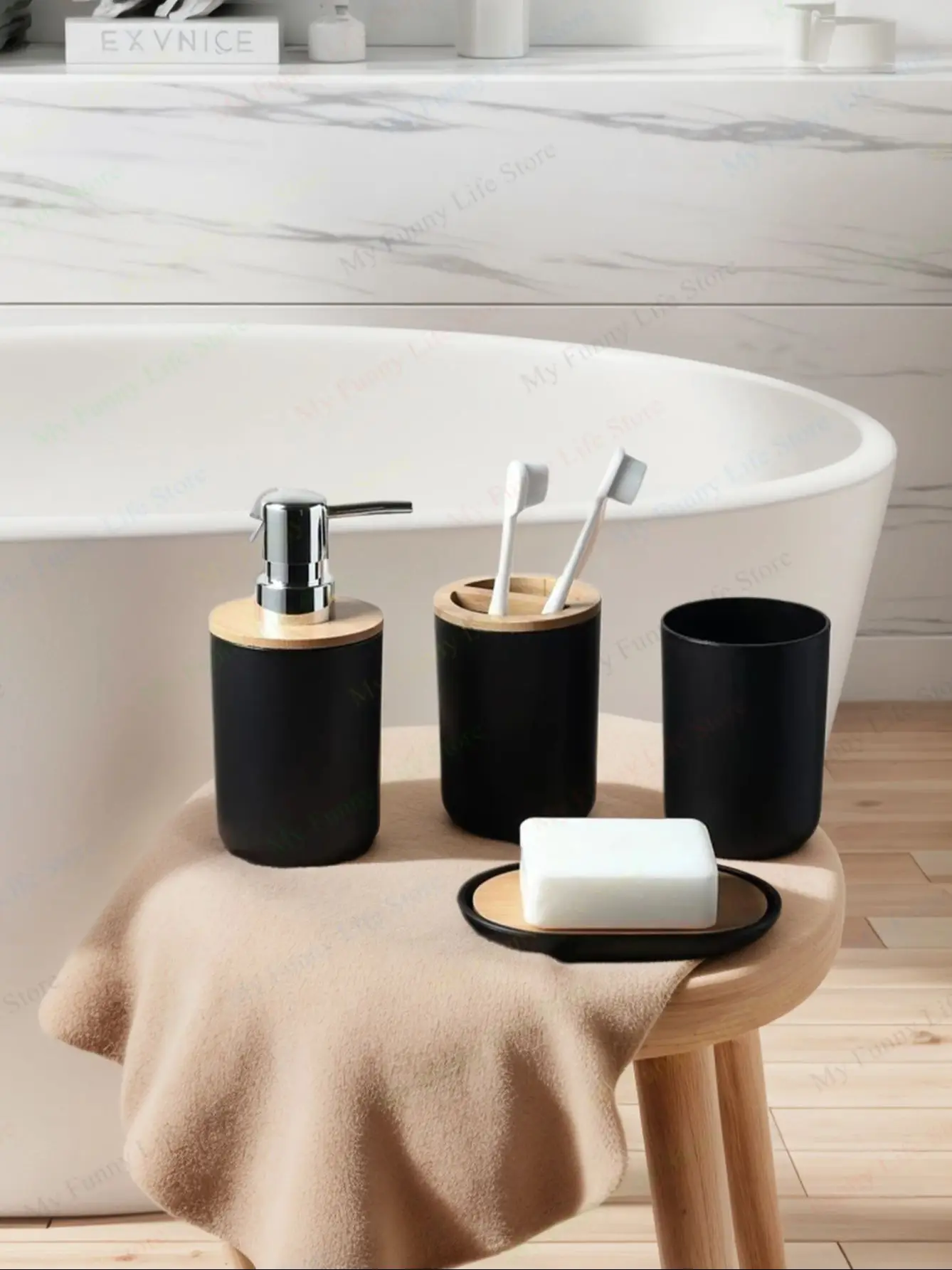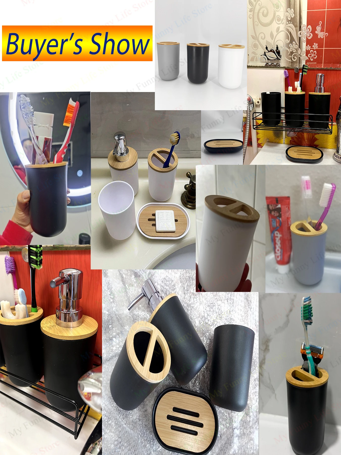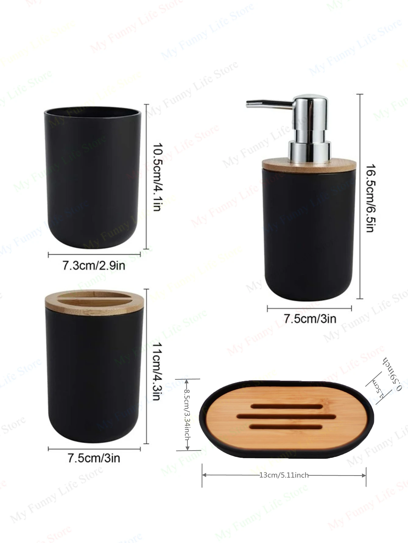 4 reviews for 1pc Lotion Dispenser/4pcs Black Bathroom Accessories Set,Plastic Toothbrush Holder with Bamboo Cover,Toothbrush Cup, Soap Dish