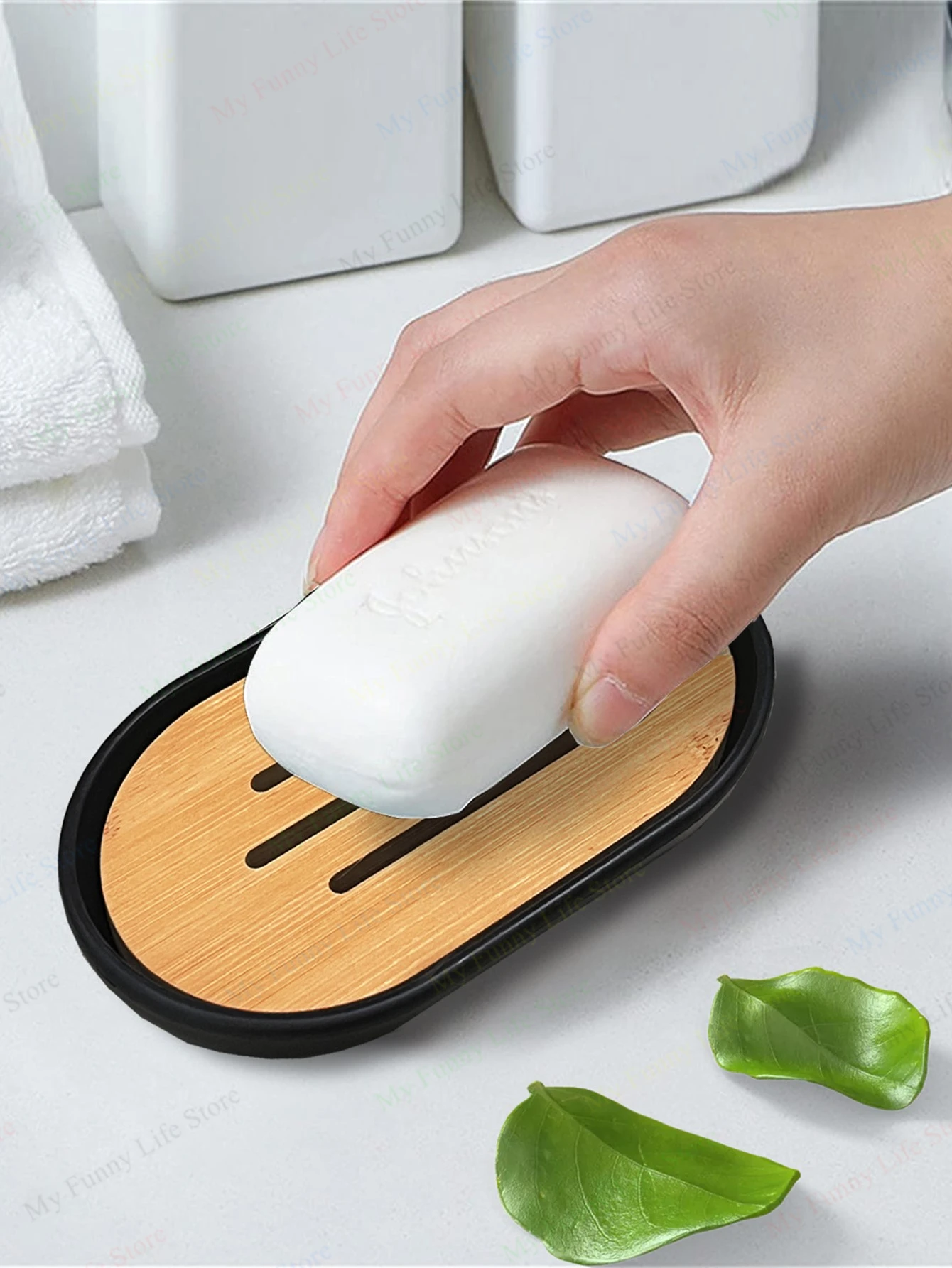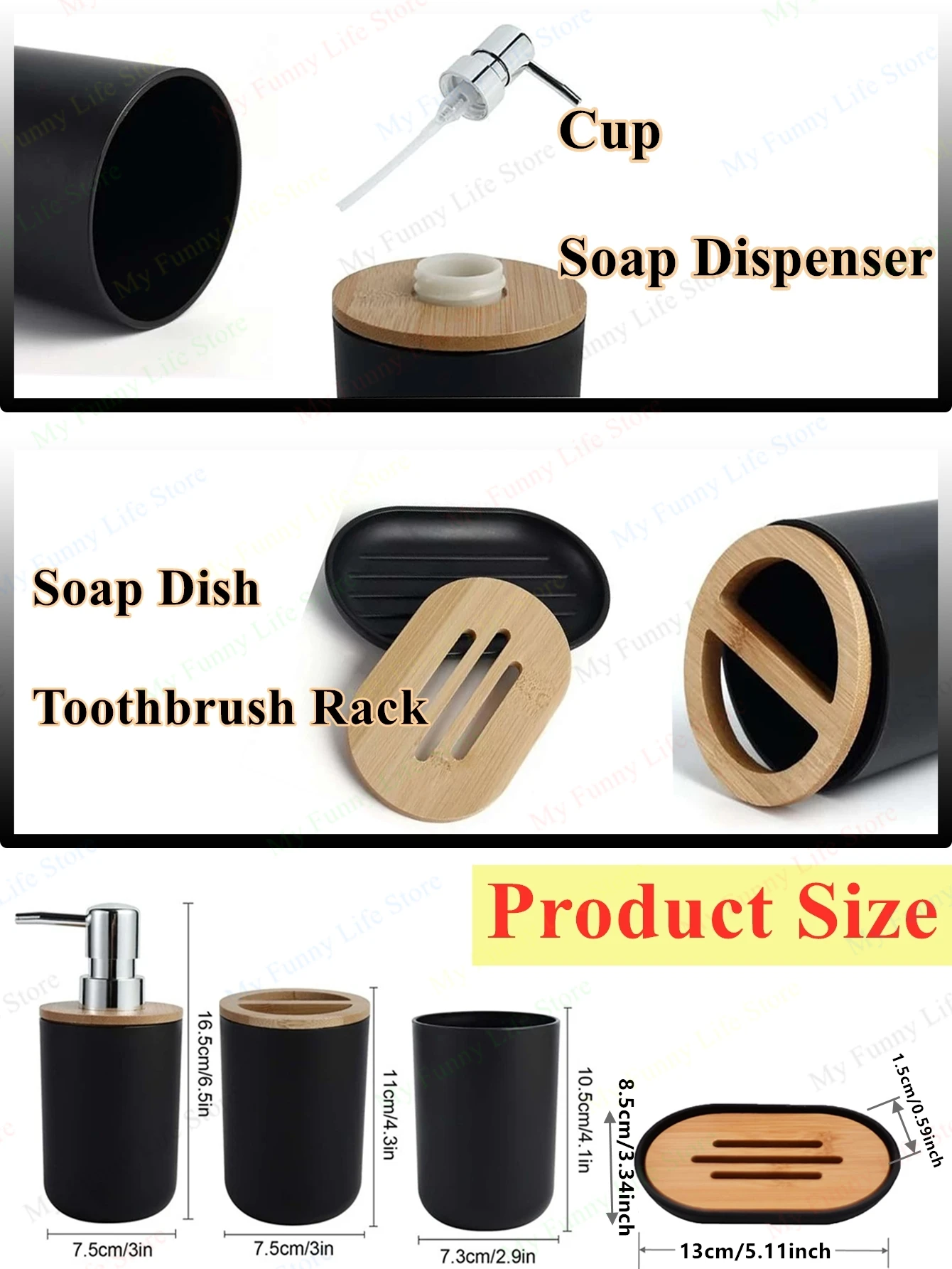 1pc Lotion Dispenser/4pcs Black Bathroom Accessories Set,Plastic Toothbrush Holder with Bamboo Cover,Toothbrush Cup, Soap Dish