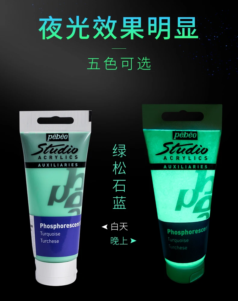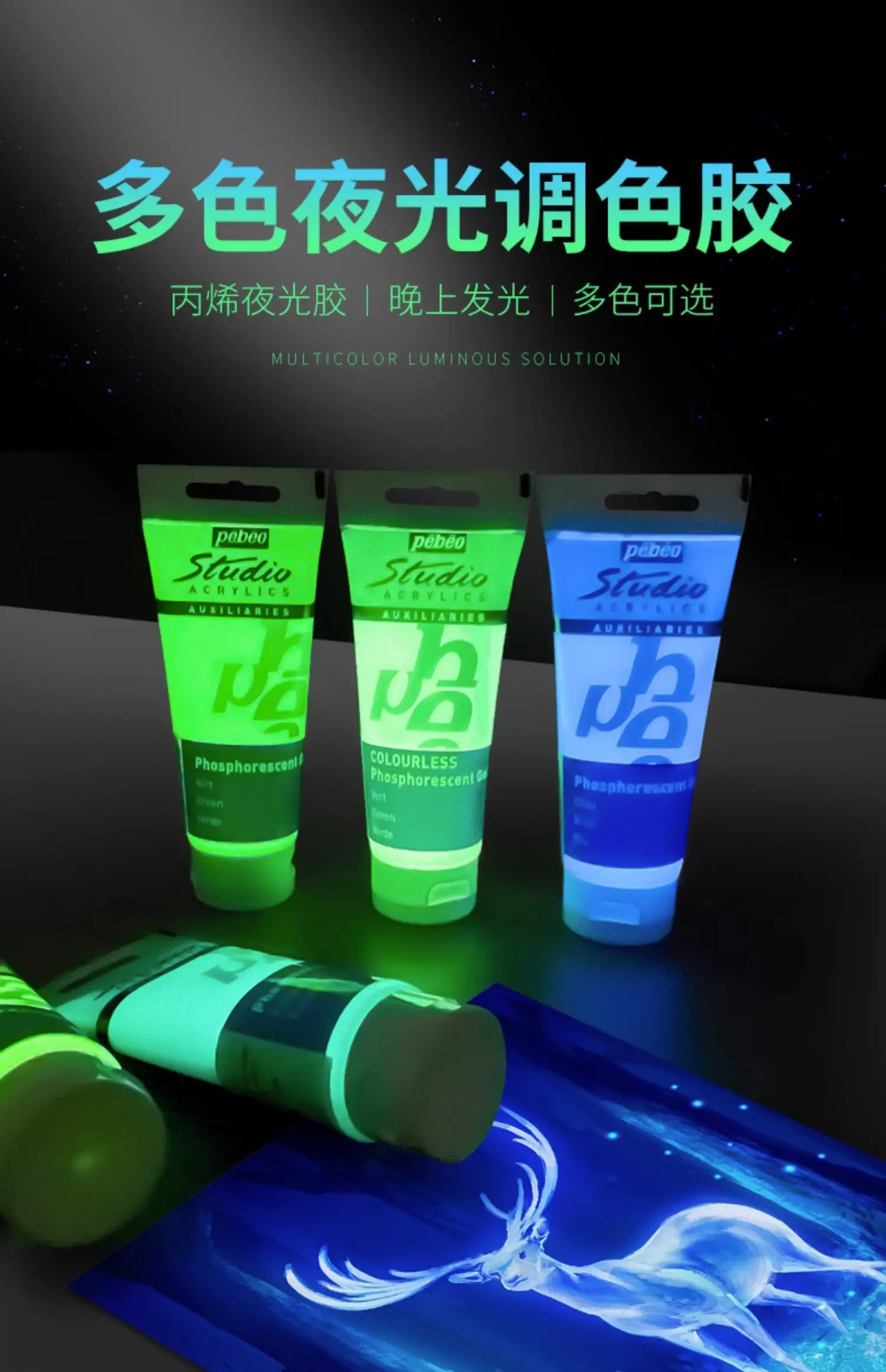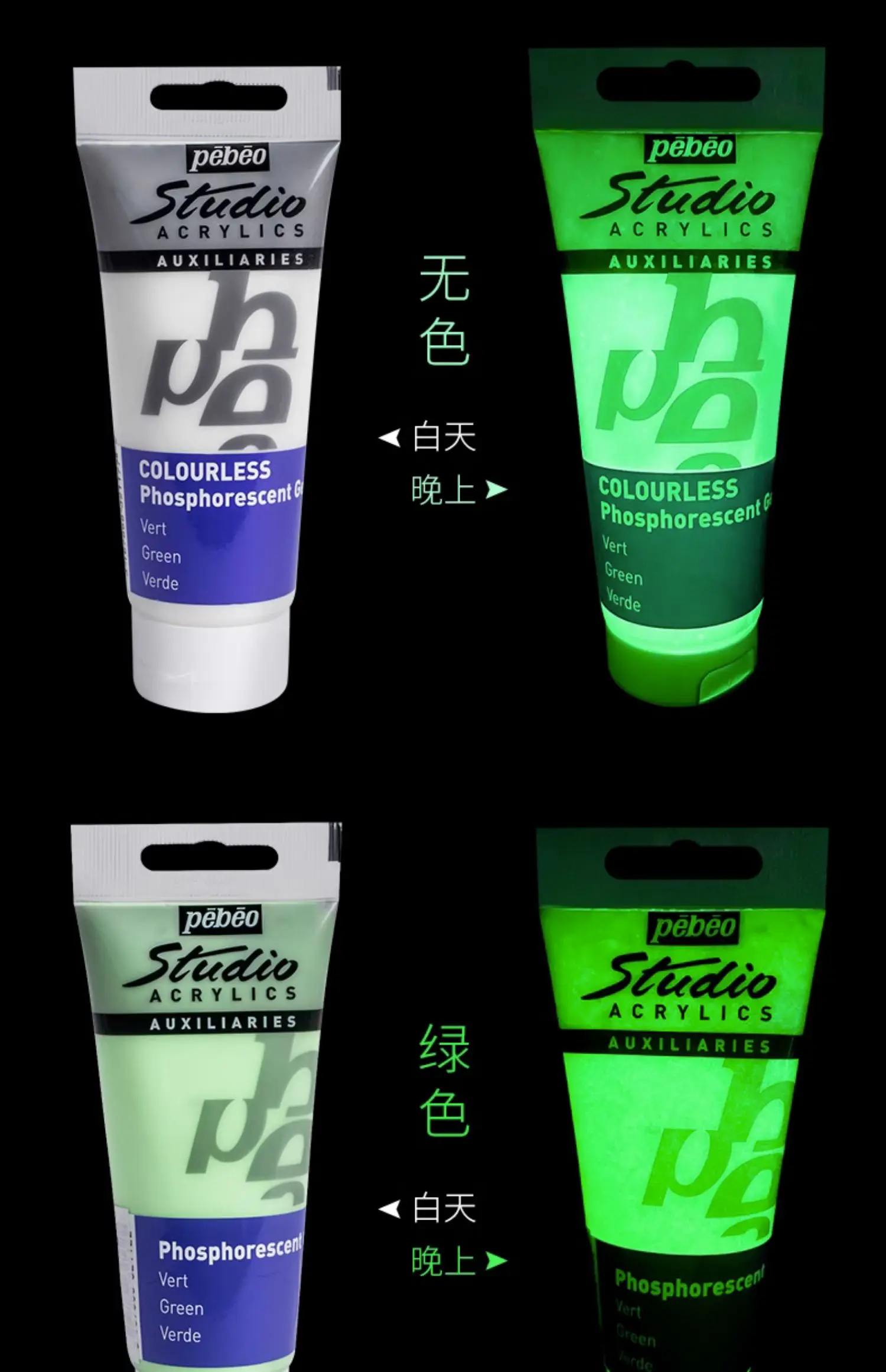 1pc Pebeo Glow in the Dark Paint, 100ml Acrylic Paint for Decoration, Art Painting, Craft, Art Supplies for Canvas, Rock, Wood