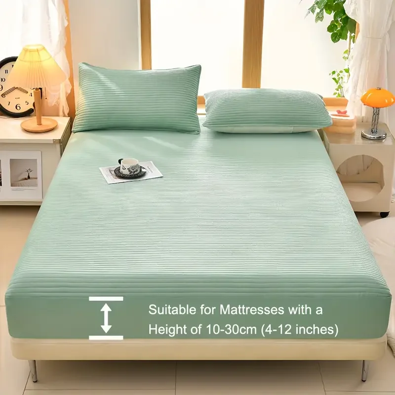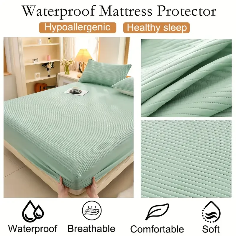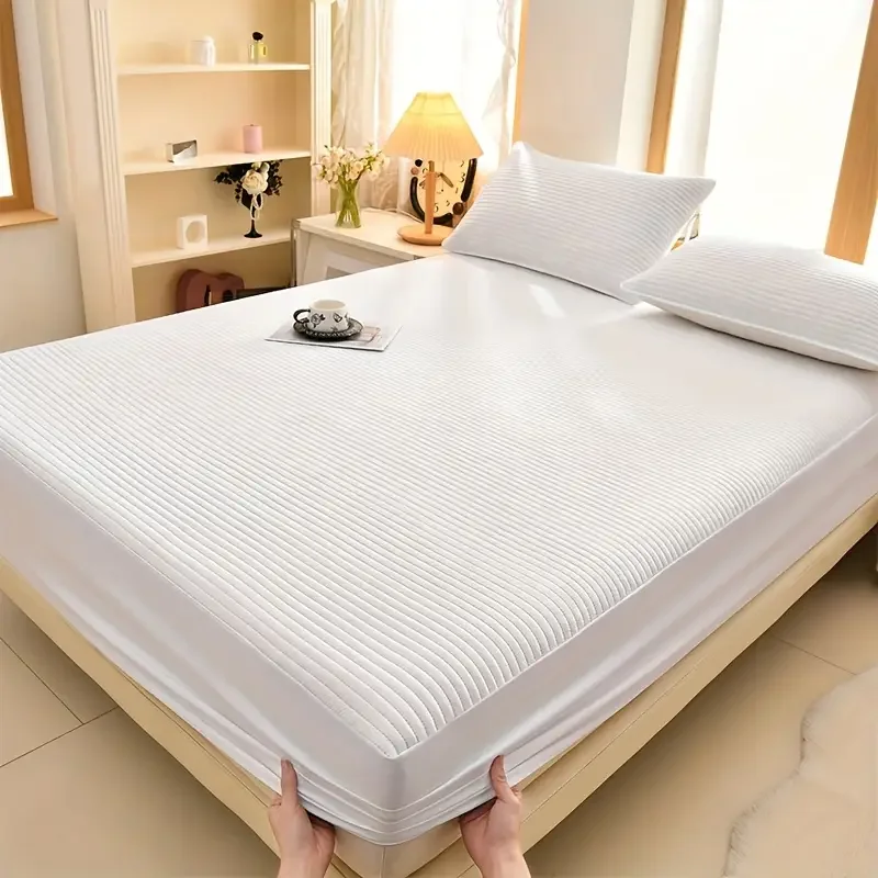 1pc Soft and Comfortable Waterproof Mattress Cover 3-Layered Mattress Protector, Solid Color Bedding Fitted Sheet