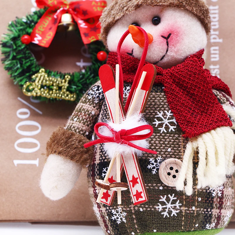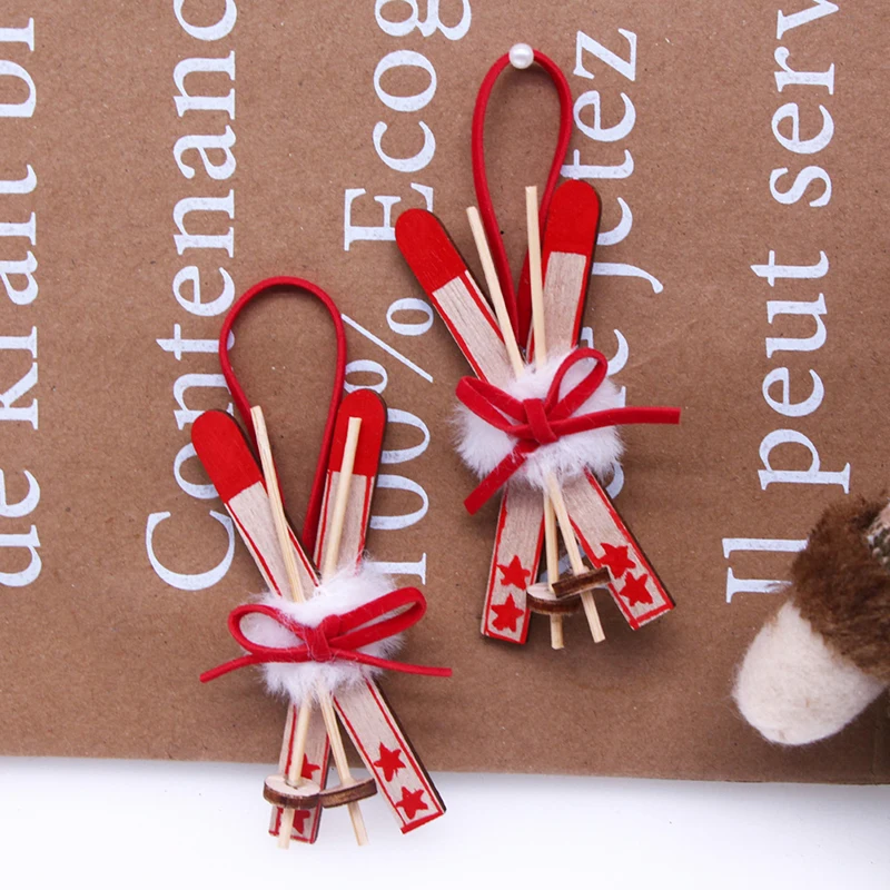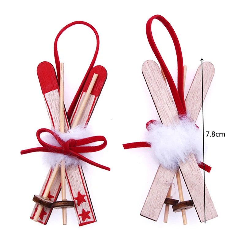 1Pc Xmas Tree Hanging Sled Ornament Wood Miniature Sleigh Hanging Pendant Ski Snow Sleigh Gift Tag Mantel Door Bookshelf Xmas