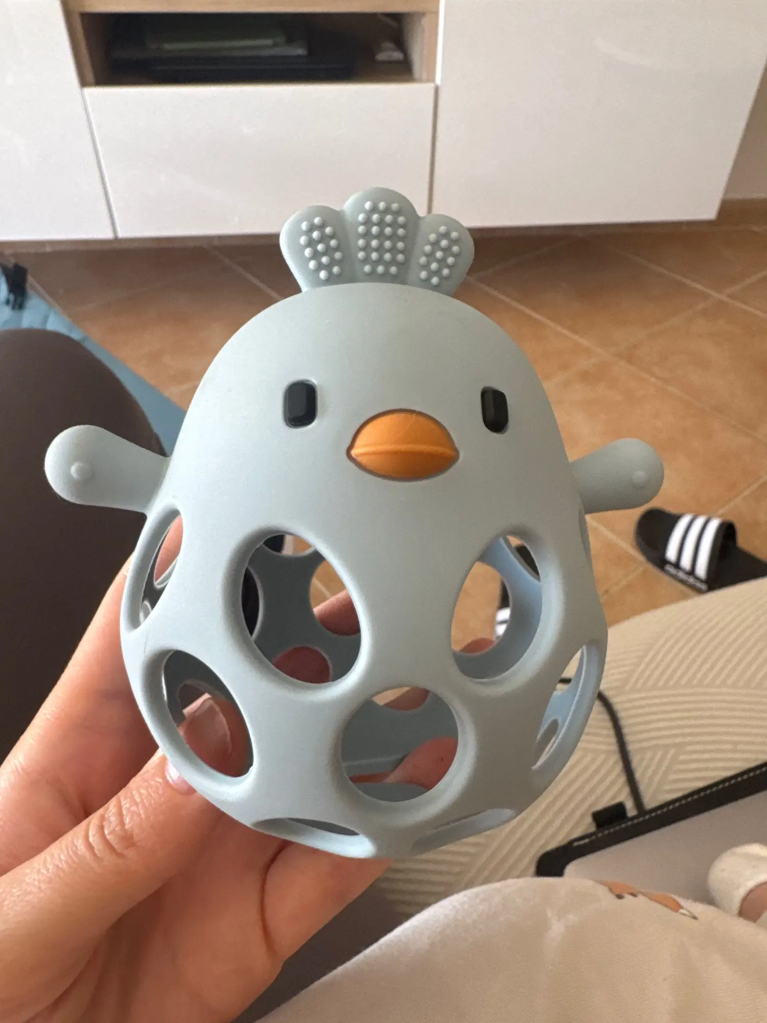 I really liked the silicone toy, my baby became fascinated. Very recommended, good texture and very soft, it helps you as a teether and relieves your stroke inconvenience.