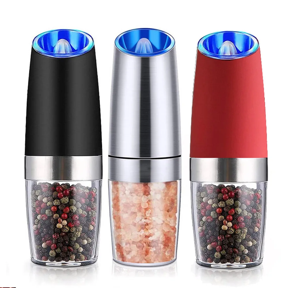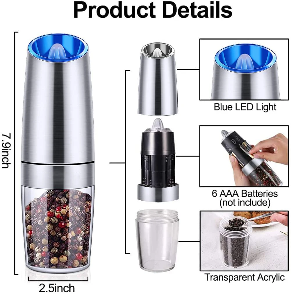 1pcs Gravity Electric Pepper Grinder, Salt or Pepper Mill & Adjustable Coarseness, Battery Powered with LED Light, Automatic