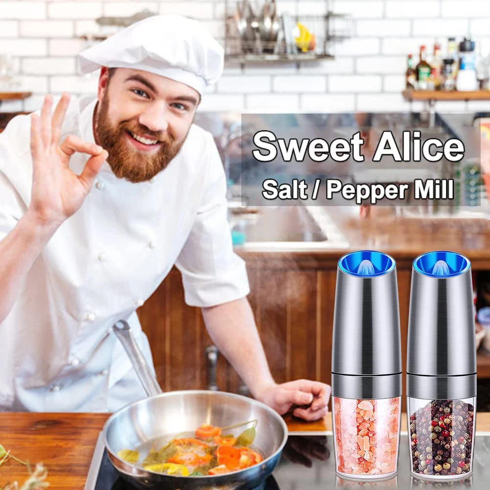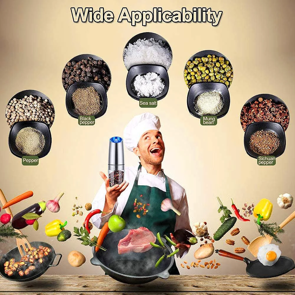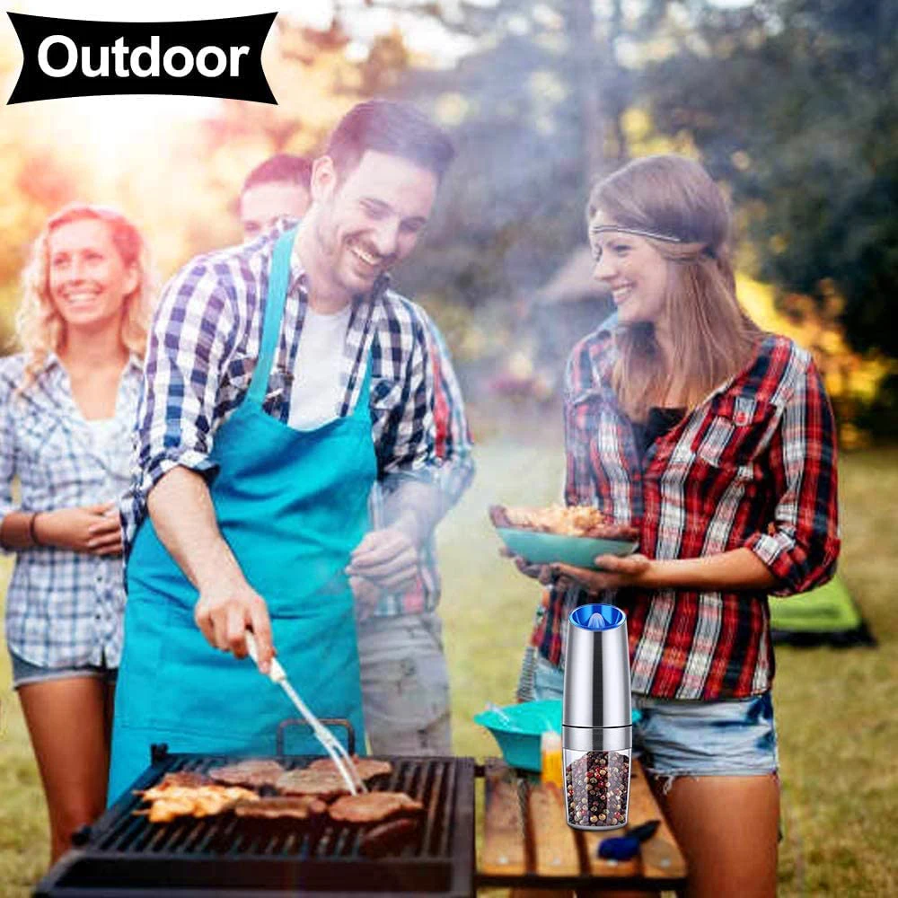 1 pcs Gravity Electric Pepper Grinder, Salt or Pepper Mill & Adjustable Coarseness, Battery Powered with LED Light, One Hand Automatic Operation