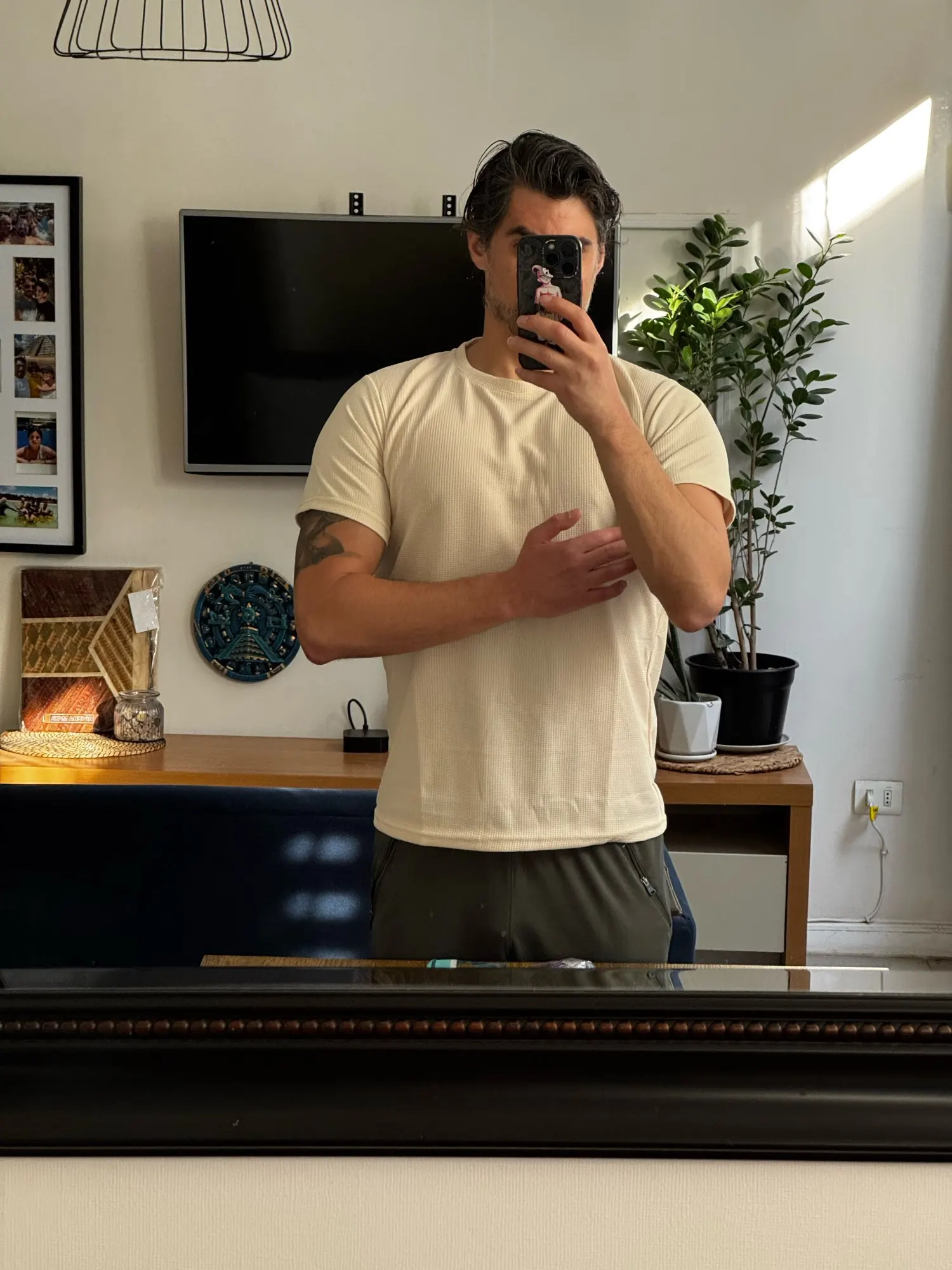5 reviews for 1pcs Men Summer T-Shirt Man Short Sleeved Waffle Solid T-Shirt Male Solid Color Casual Tee Round Men’s Round Neck Fashion Top