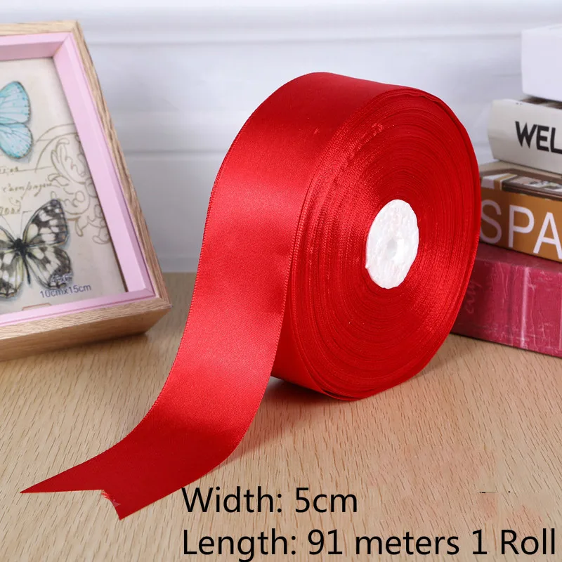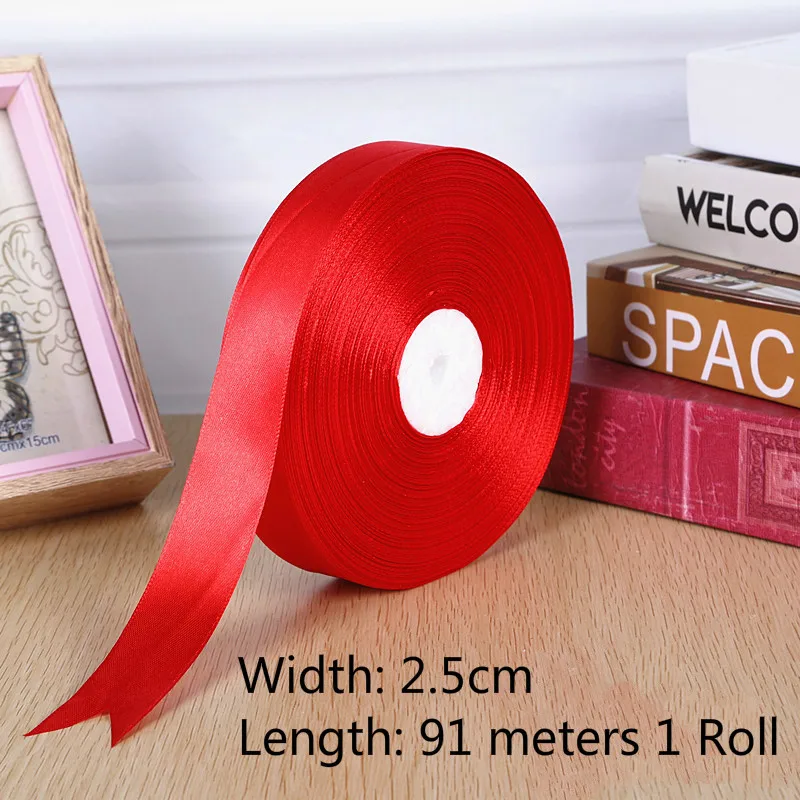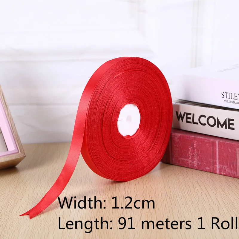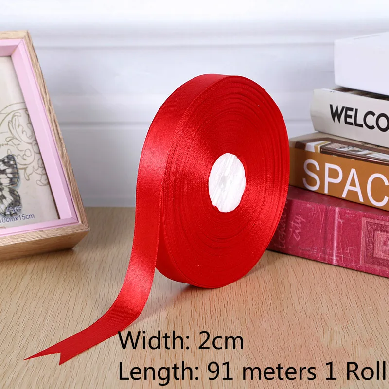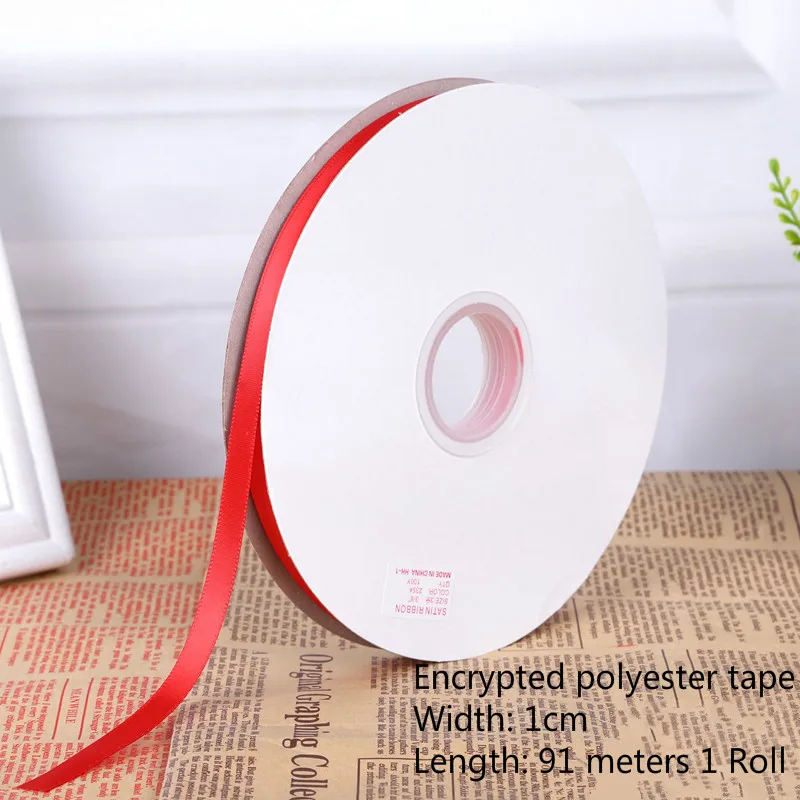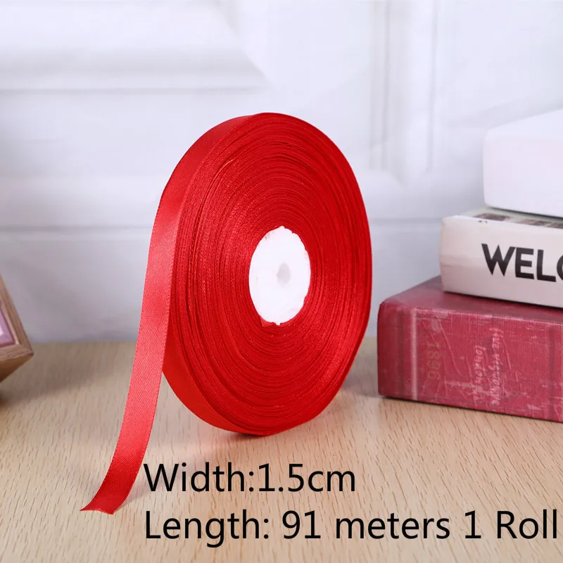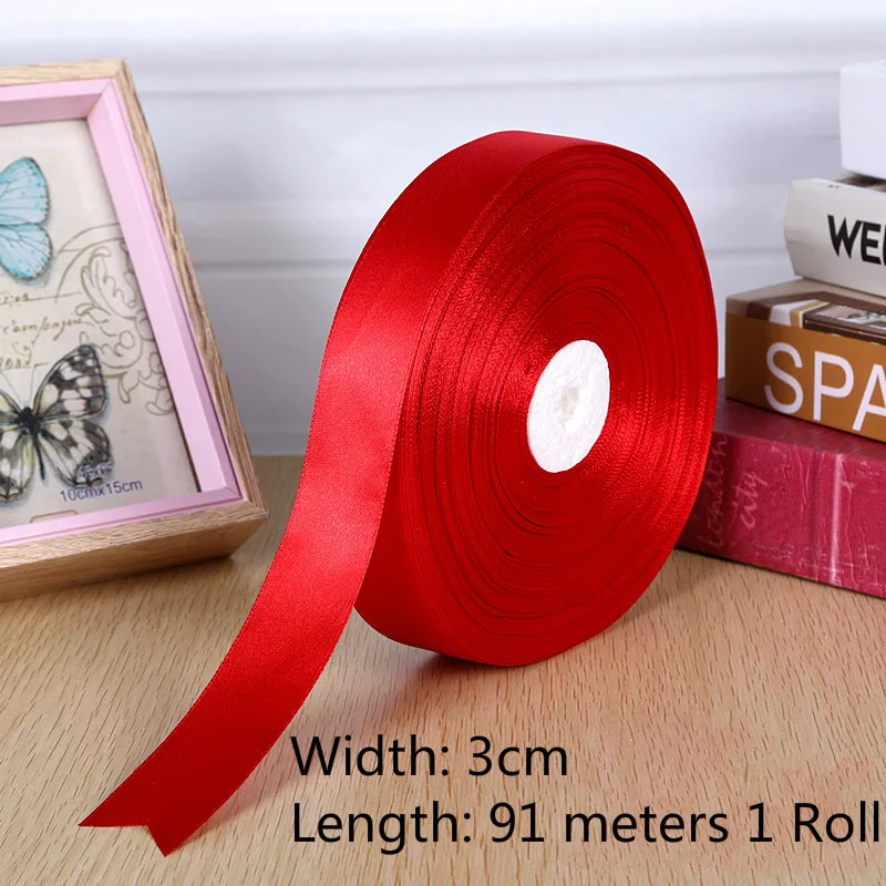 1roll 0.3cm-5cm Red Single Face Satin Ribbons For Arts Crafts Christmas Wedding Party Decoration Gift Wrap DIY Material tape