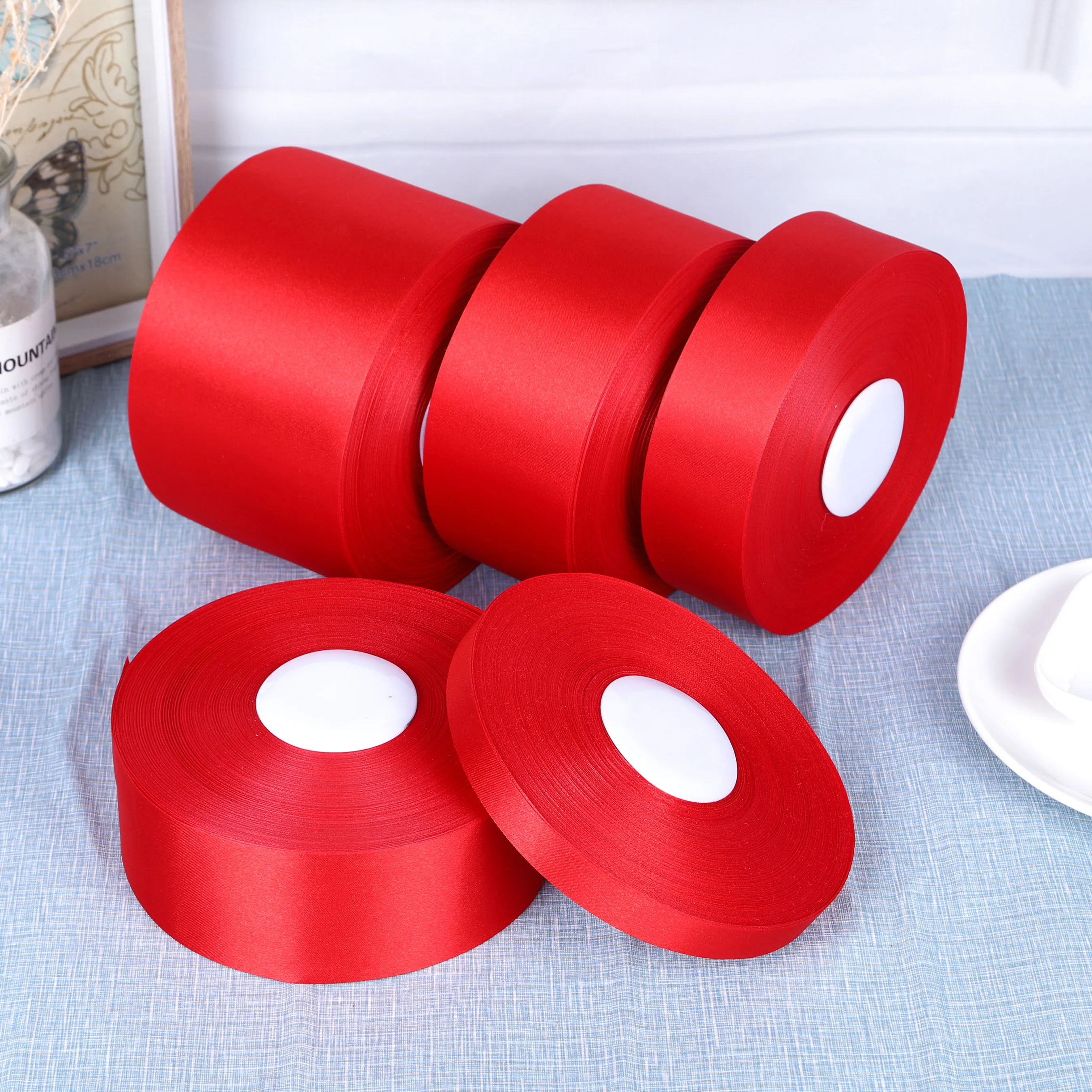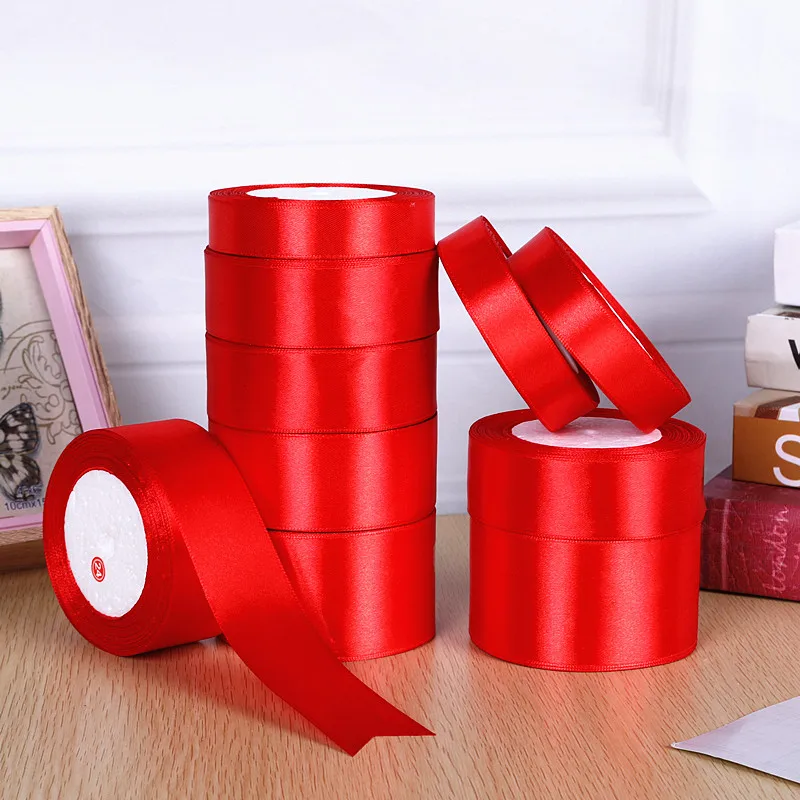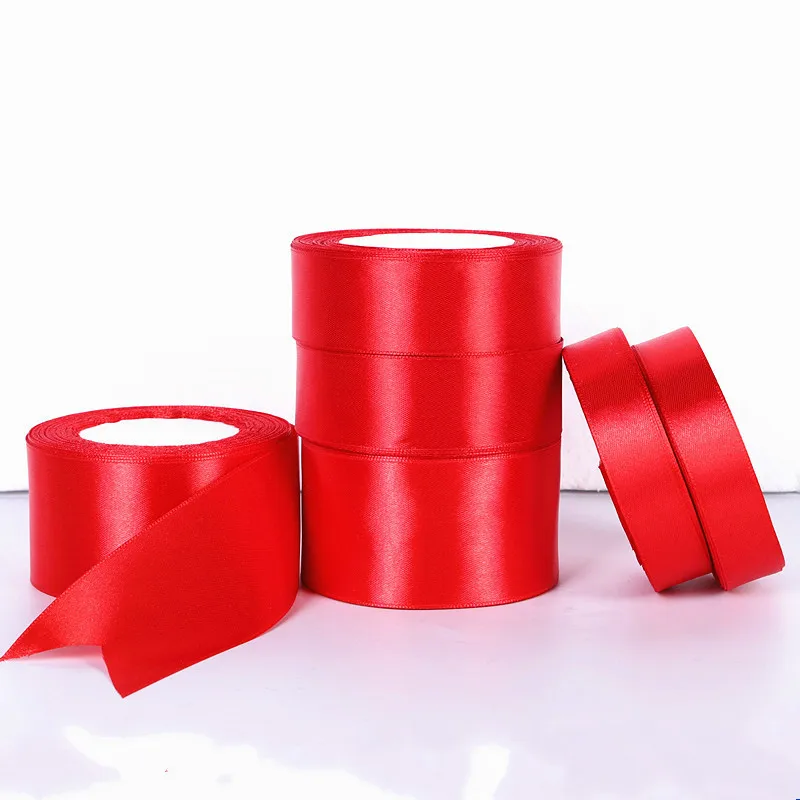 1roll 0.3cm-5cm Red Single Face Satin Ribbons For Arts Crafts Christmas Wedding Party Decoration Gift Wrap DIY Material tape