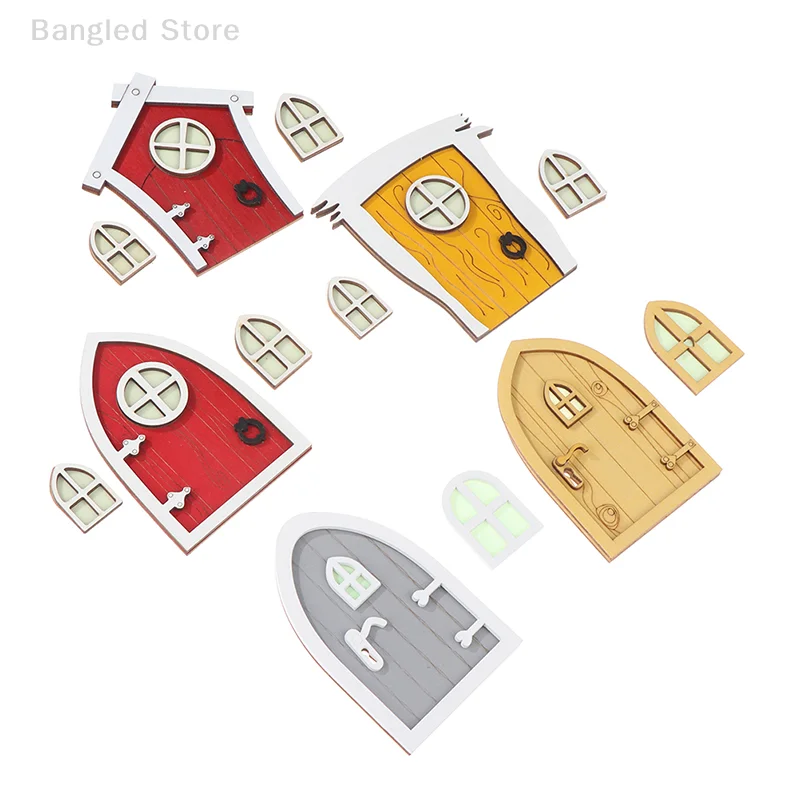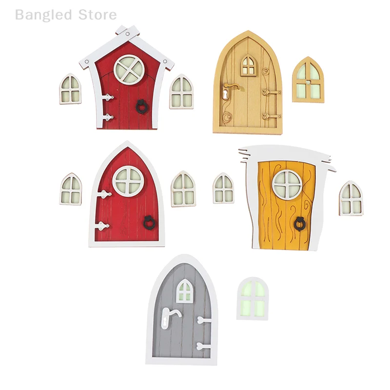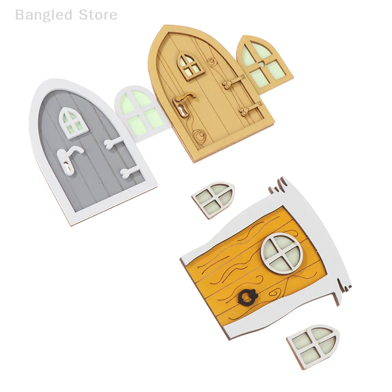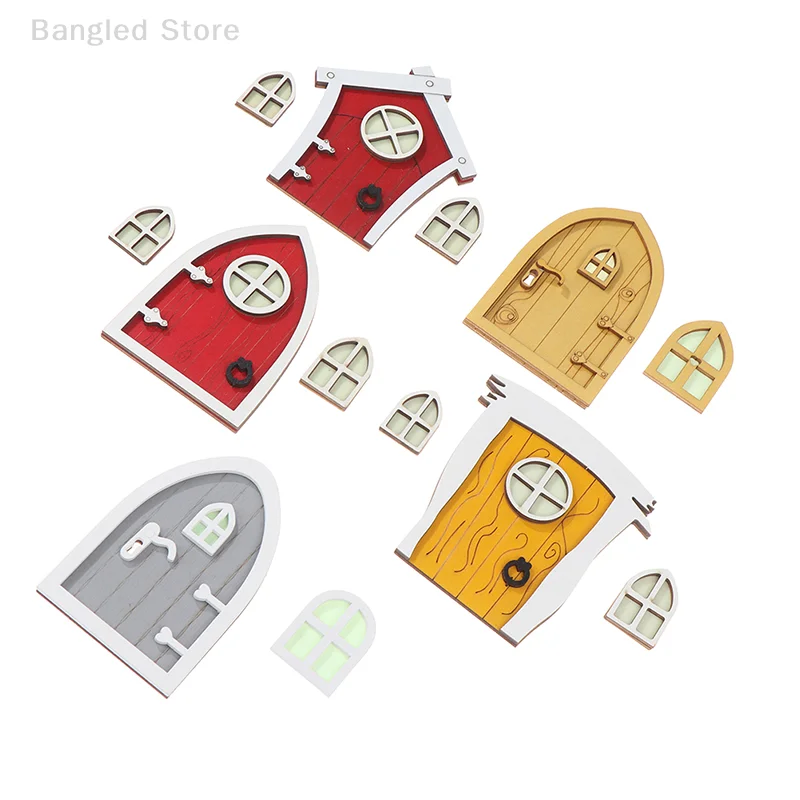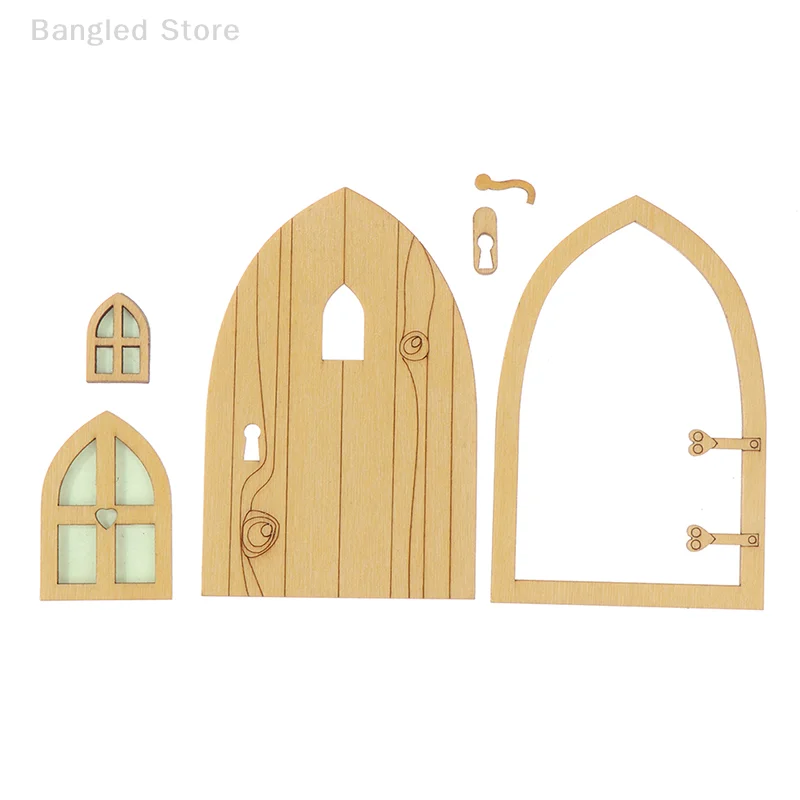 1set Dollhouse Miniature Wooden Elf Door Fairy Gnome Window Door Model Doorknob Doll House Garden Decoration Toy Accessories