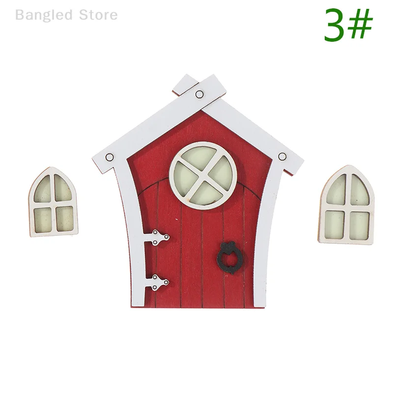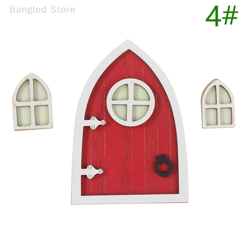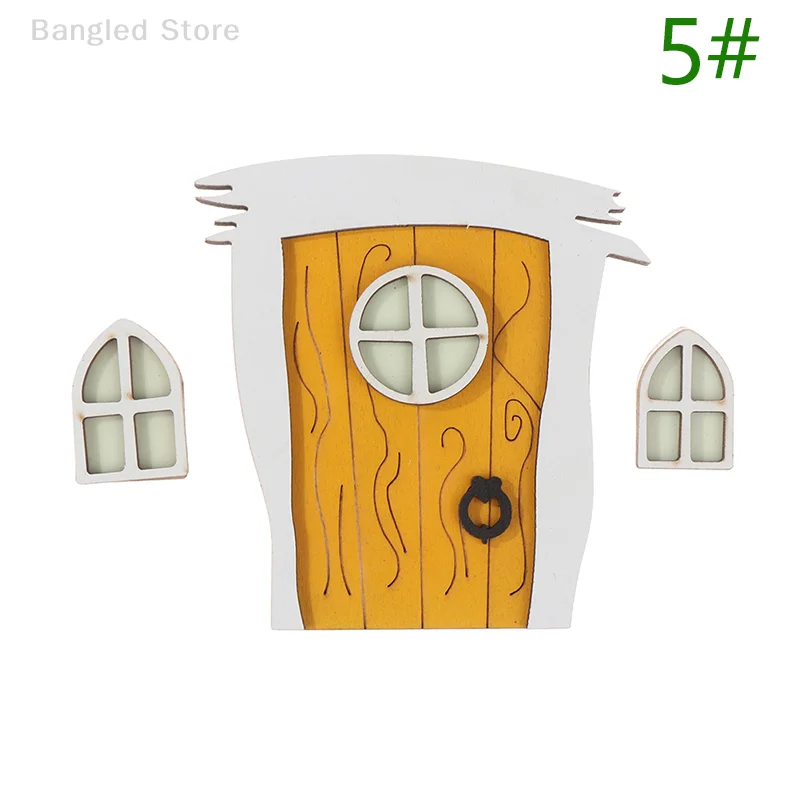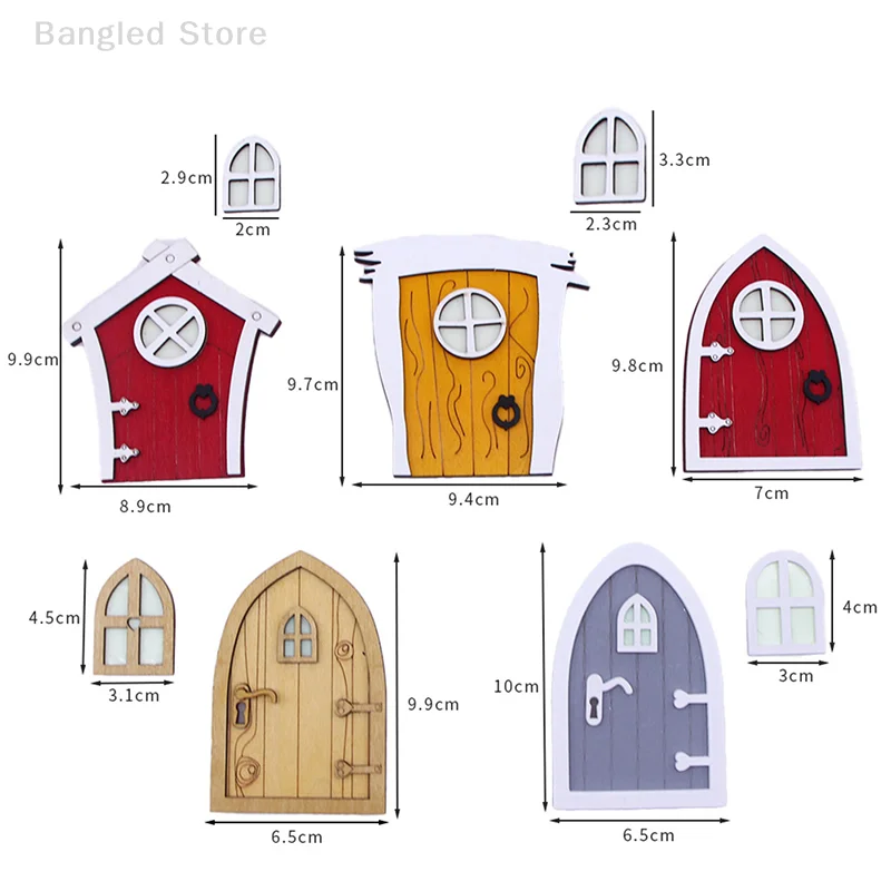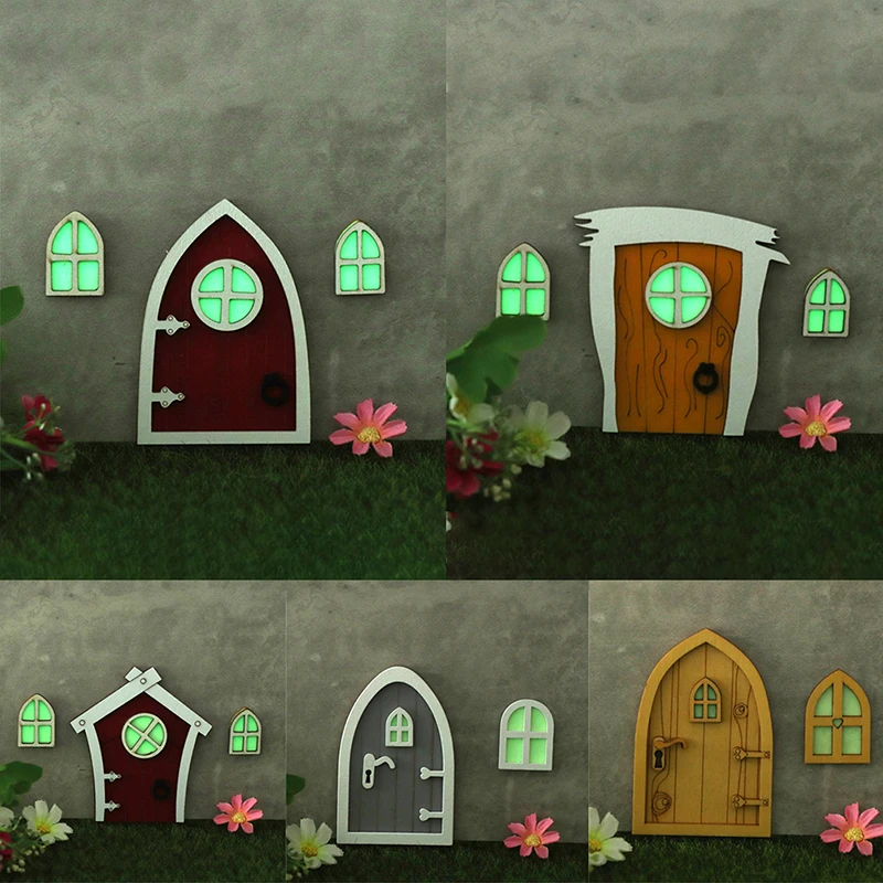 1set Dollhouse Miniature Wooden Elf Door Fairy Gnome Window Door Model Doorknob Doll House Garden Decoration Toy Accessories
