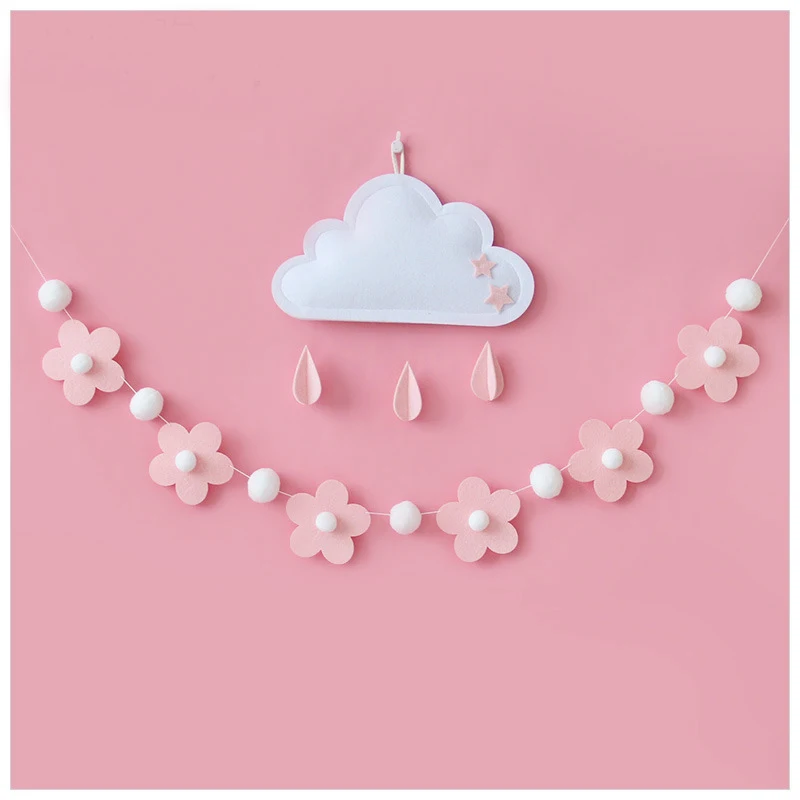 1Set Sweet Felt Flower Theme Banner Daisy Bedroom Hanging Bunting Garlands for Kids Girl Birthday Baby Shower Party Decoration