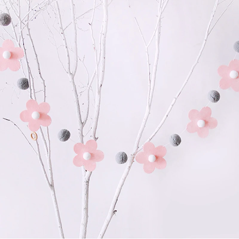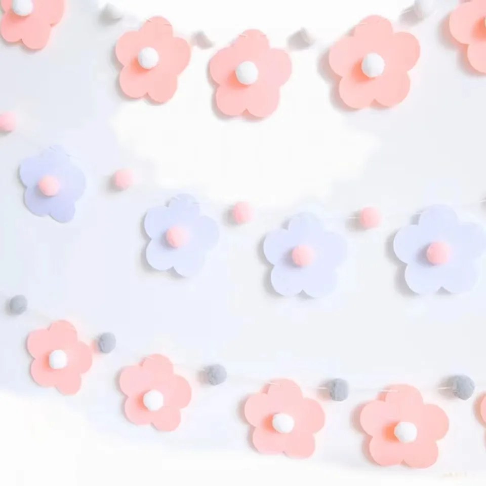 1Set Sweet Felt Flower Theme Banner Daisy Bedroom Hanging Bunting Garlands for Kids Girl Birthday Baby Shower Party Decoration
