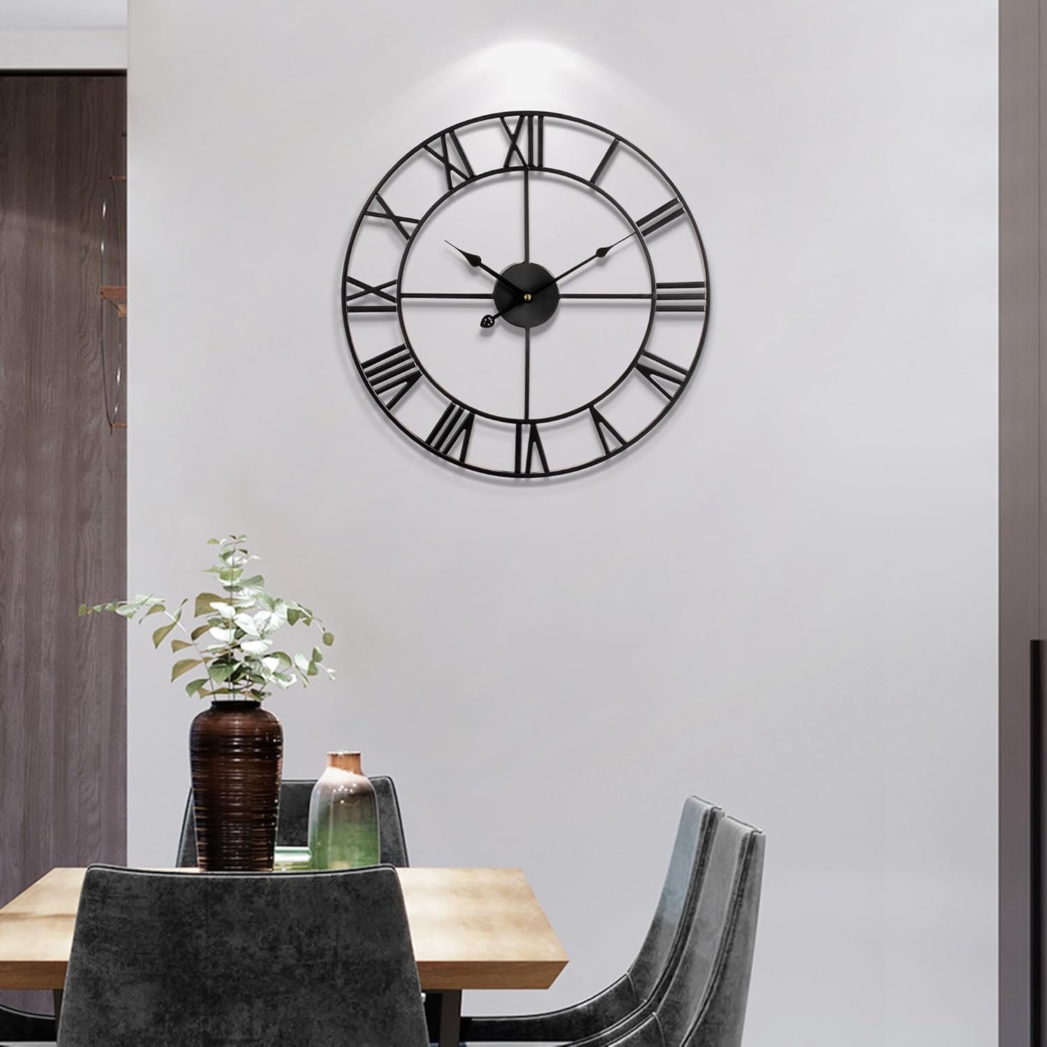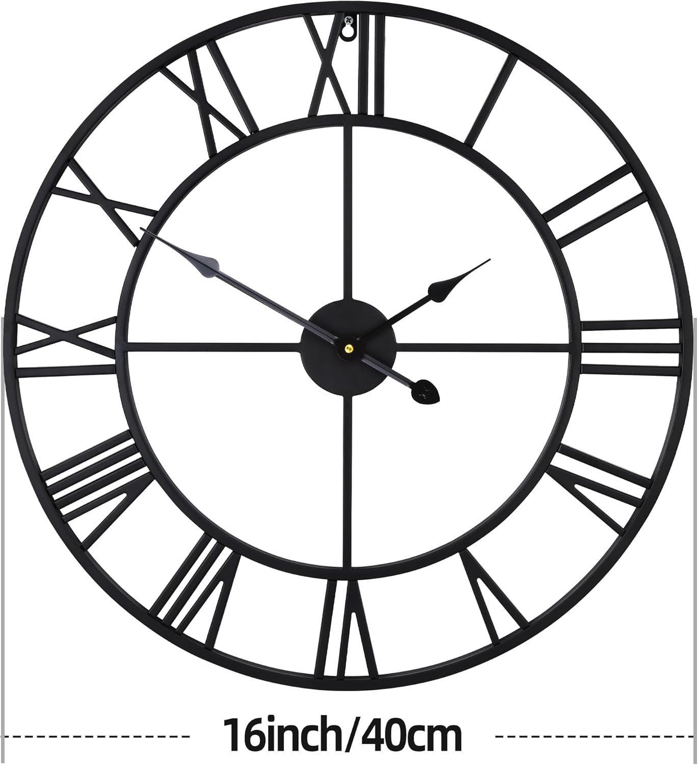 1st owned 16 inch Wall Clock – Metal Retro Roman Numeral Wall Clock, Almost Silent, Easy to Read for Living Room Decor/Home/Kitchen/Bedroom/Office/School(Black)
