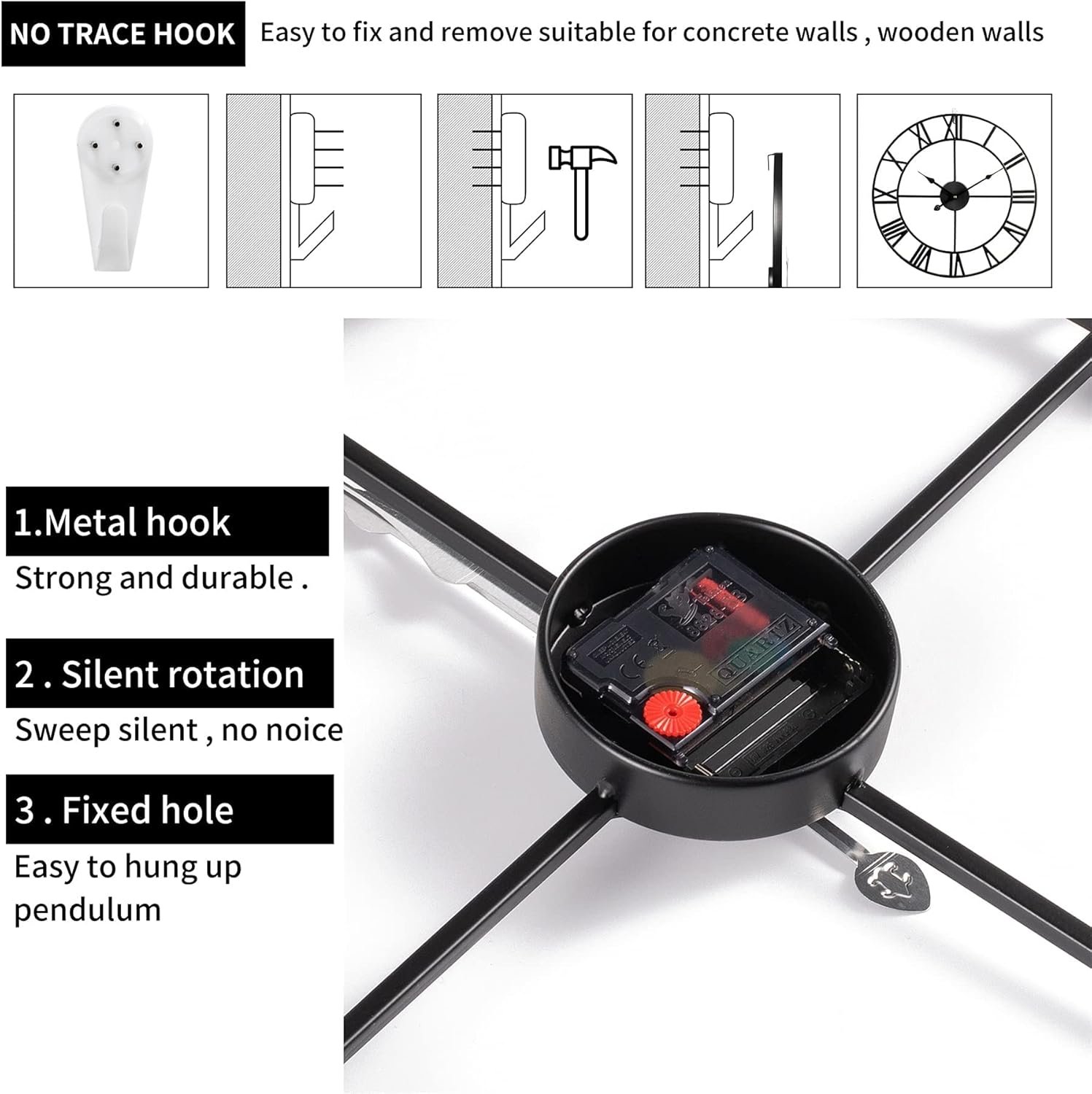 【Non-Ticking Quartz Movement】- Enjoy a peaceful environment with our non ticking wall clock. Fitted with a high-quality quartz movement, this clock runs silently without the disturbing ticking sound, making it ideal for bedrooms, study rooms, or any quiet area.