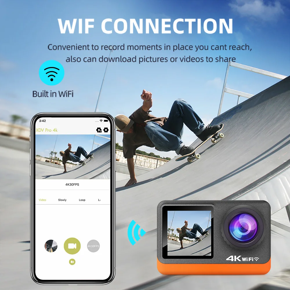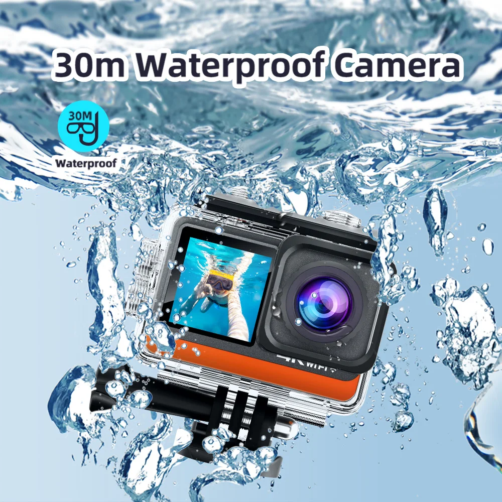 2.0″ Touch IPS Dual Screen Action Camera 4K60FPS 24MP Wi-Fi 170D EIS Optional Filter 1080P Webcam Underwater 30M Sport Camera
