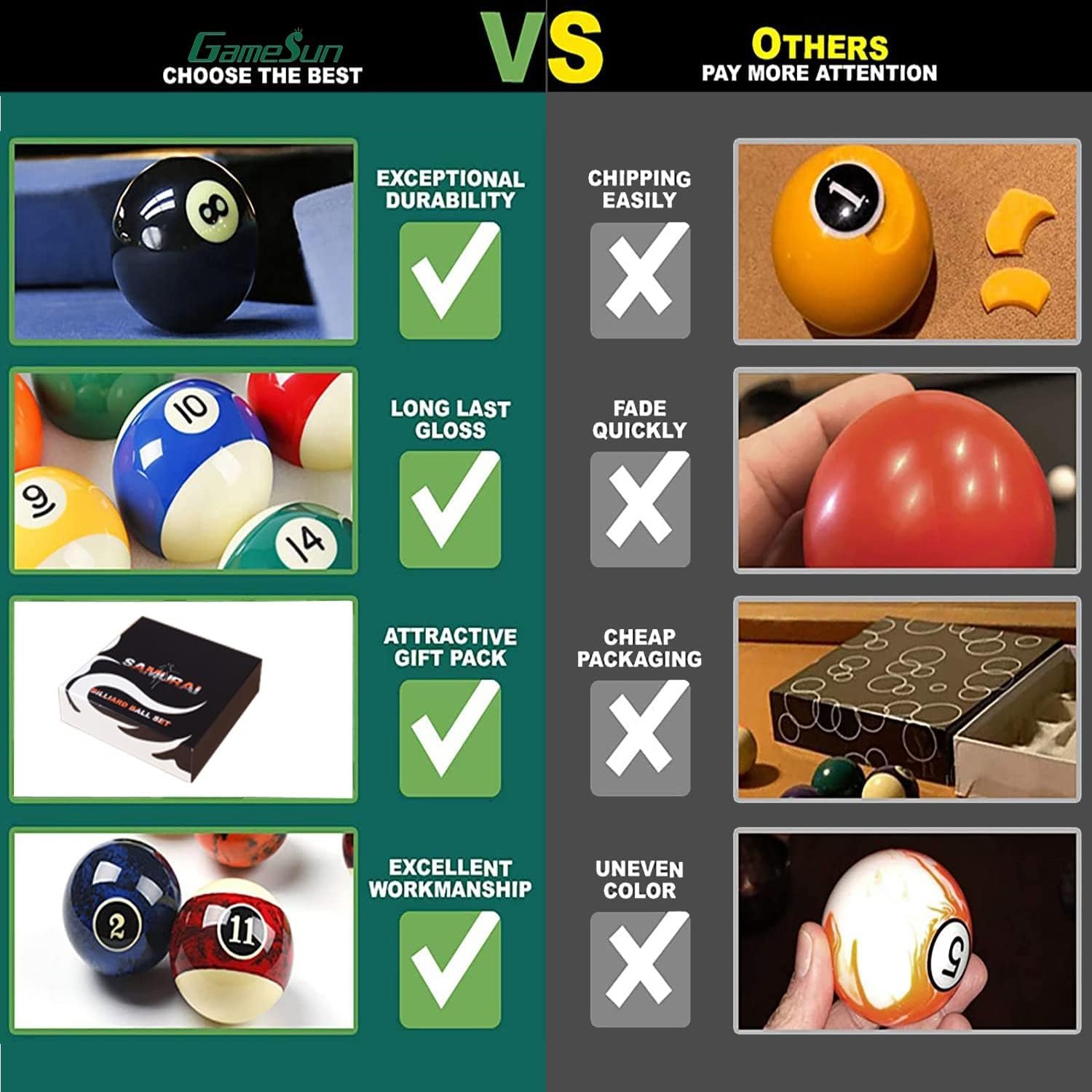 2-1/4”(57.15mm) Pool Ball Set, Pool Table Balls, Complete 16 Marble Billiard Ball Set