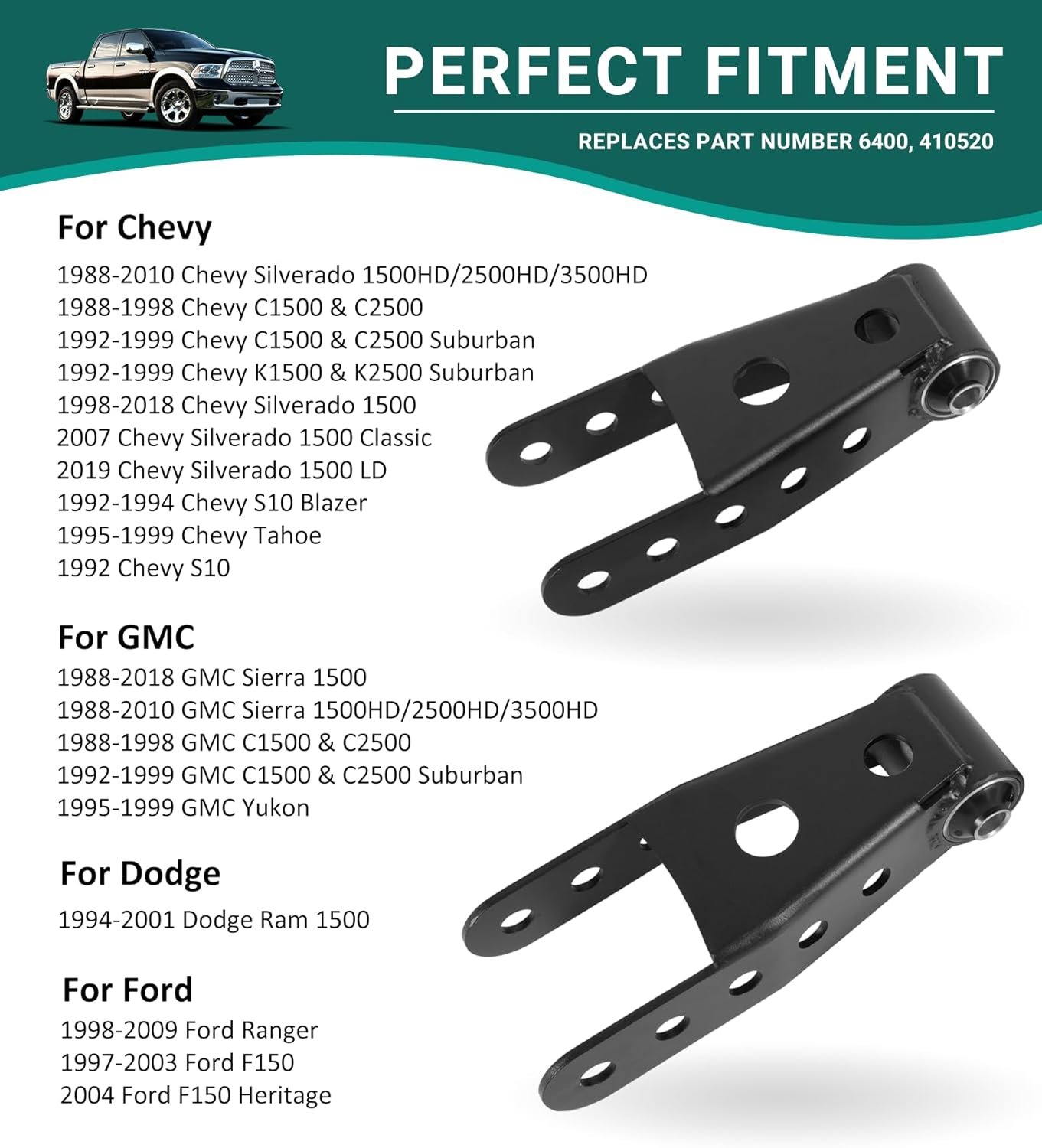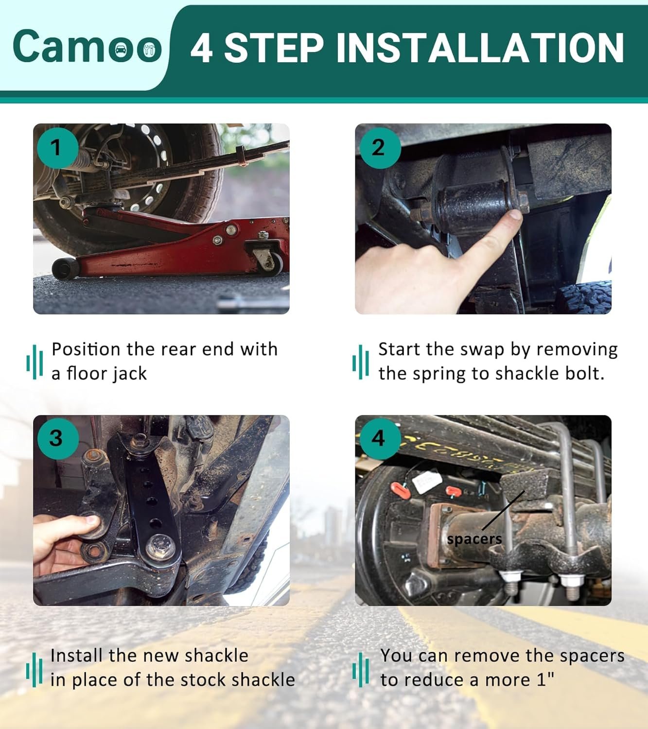 ✅【2-3″ Rear Drop】:The suspension rear drop shackle kits are designed drop the rear of your Sport Truck or SUV up to 2-3 inches. It can achieve a 3″ drop by removing rear factory block.This kit enhances the appearance of your truck and provides a smoother ride.