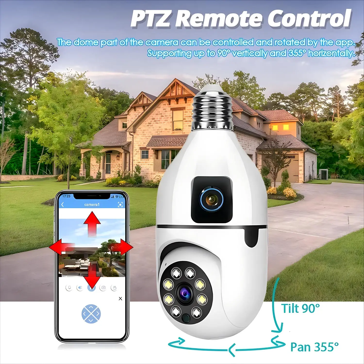 1 review for 2.4G Wifi Dual Lens WIFI Bulb Camera CCTV IP Wireless PTZ Cameras Color Night Vision Two-Way Audio Indoor Video Surveillance Cam