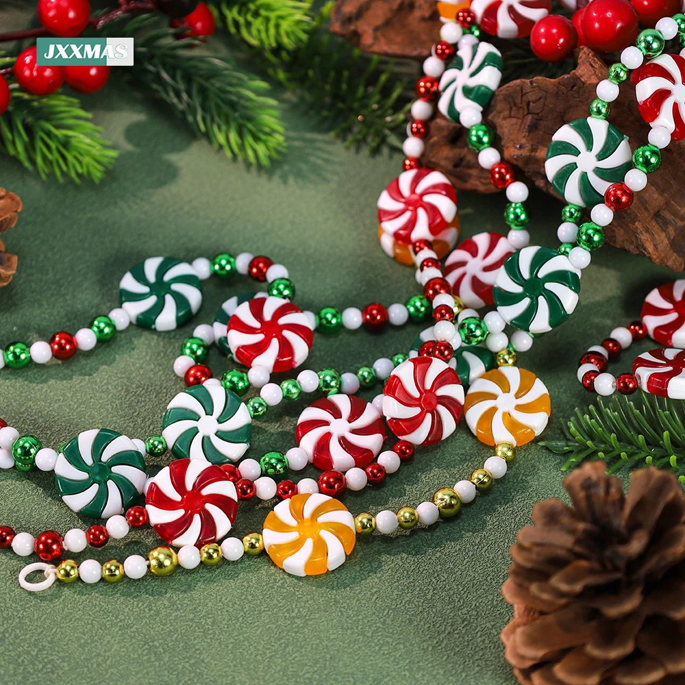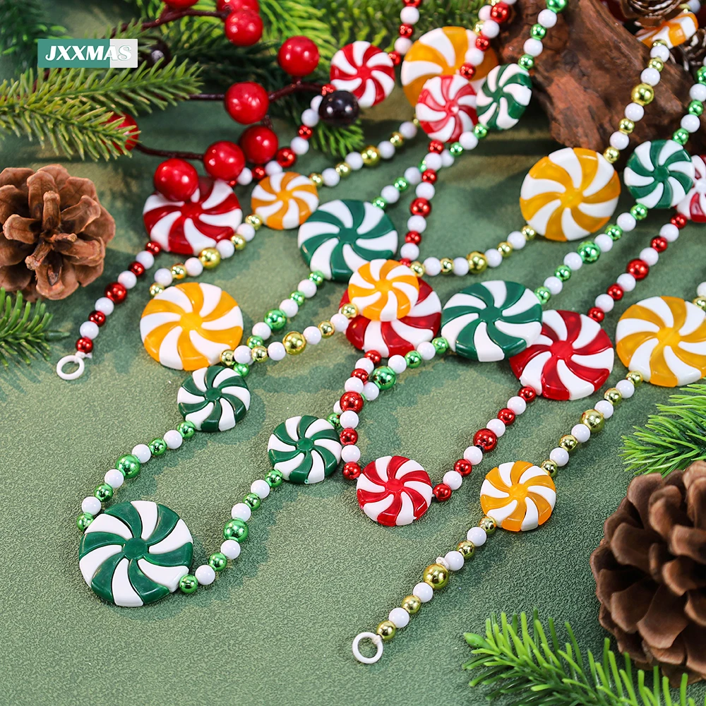 2.4M Colorful Candy Pendants Garland String Bead Christmas Tree Hanging Ornaments for Fireplace Wreath Home Decor Party Supplies