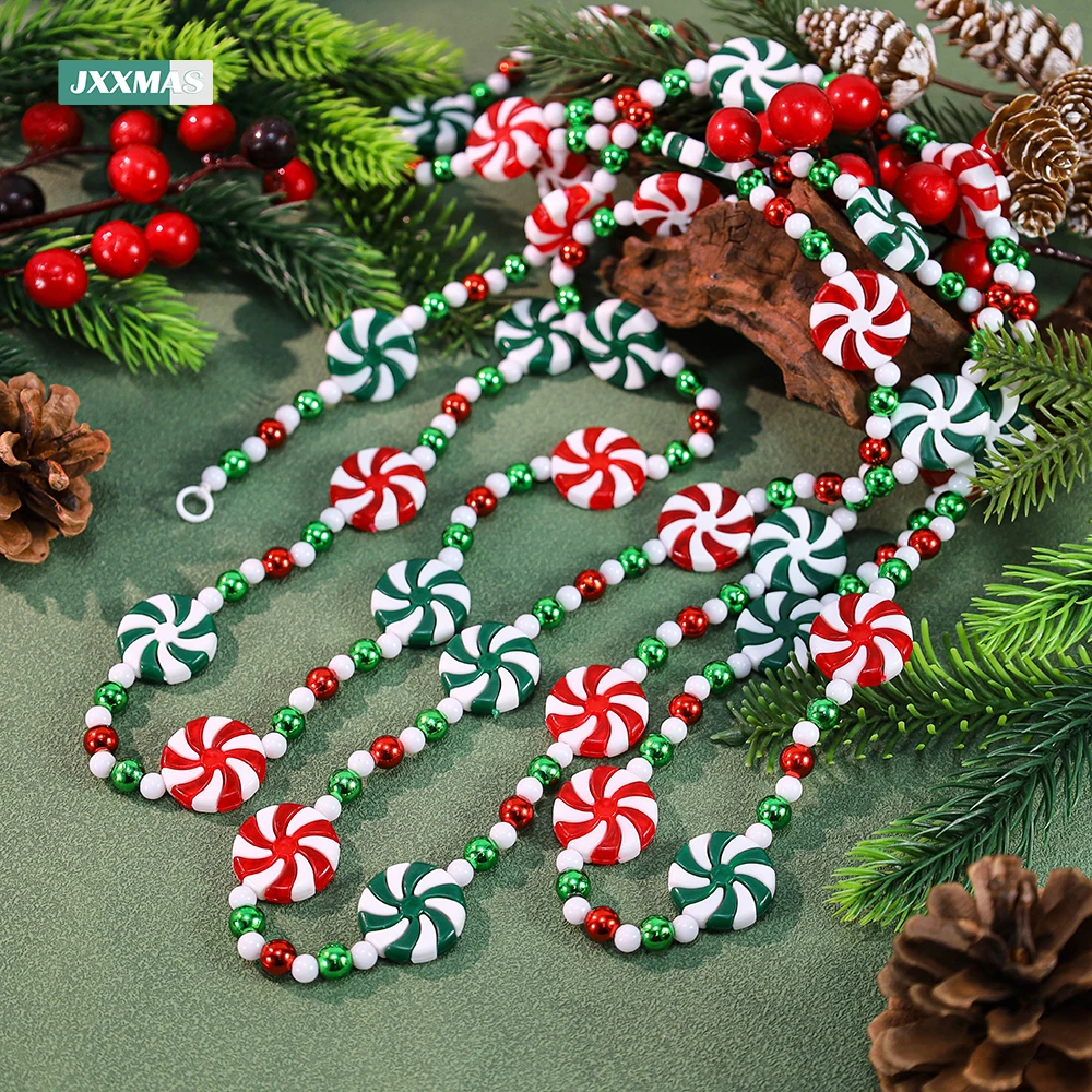 2.4M Colorful Candy Pendants Garland String Bead Christmas Tree Hanging Ornaments for Fireplace Wreath Home Decor Party Supplies