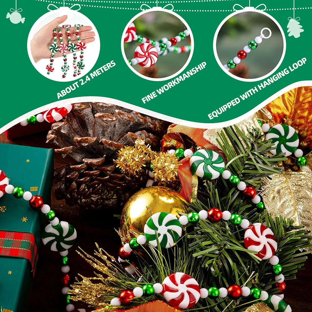 Easy to use: Bring some holiday sweetness to your Christmas tree with this 2.4 Meters-long peppermint candy garland. Beautiful beads and candy are already strung and hung straight up, saving you time and effort.
