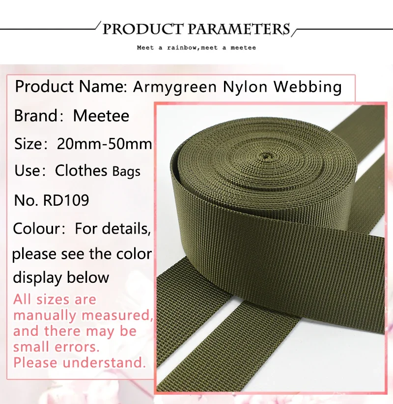 2/5/8/10M 20-50mm Armygreen Nylon Webbing Tapes for Bag Ribbon Strap Car Seat Belt Lanyard Clothes Decorative Sewing Accessories