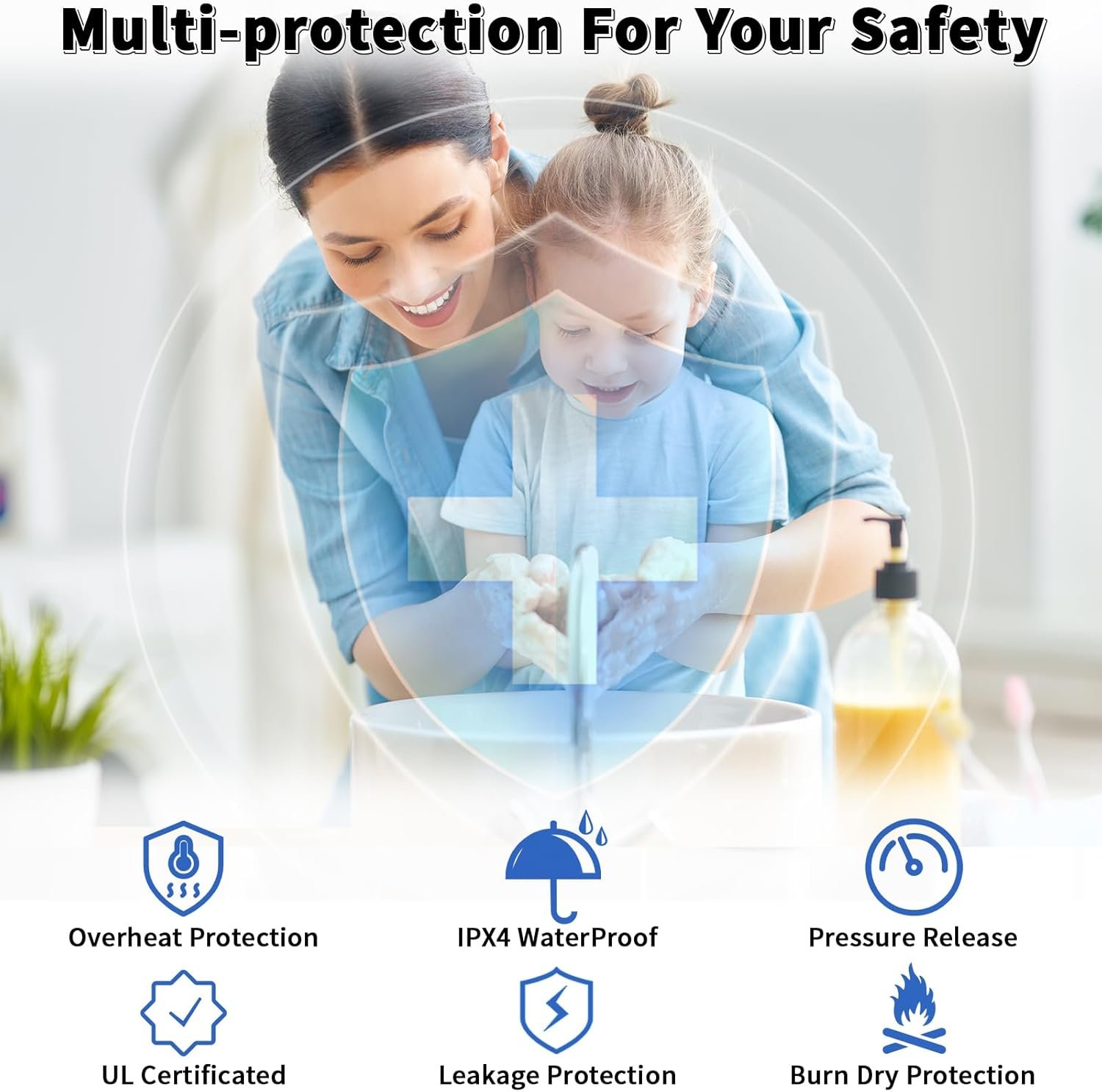 Provide automatically self-controling temperature and pressure relief.When the temperature in the tank is too high, the hot water heater electric will automatically release high pressure of 2.5 gallon water heater to ensure tank safety,provide overpressure protection and eliminate safety hazards for you.